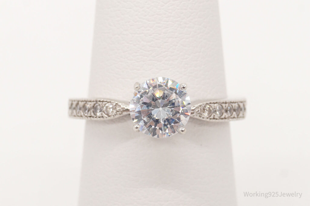 Vintage Cubic Zirconia Sterling Silver Ring - Size 5.75