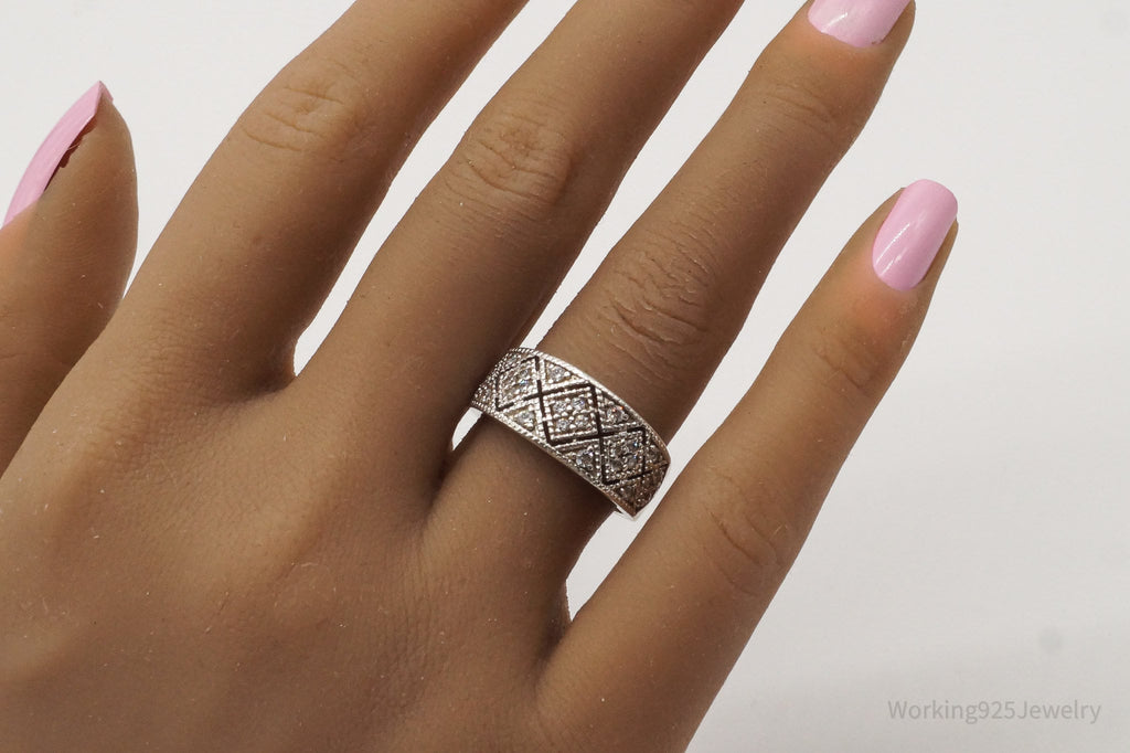 Vintage Cubic Zirconia Sterling Silver Ring - Size 7.75