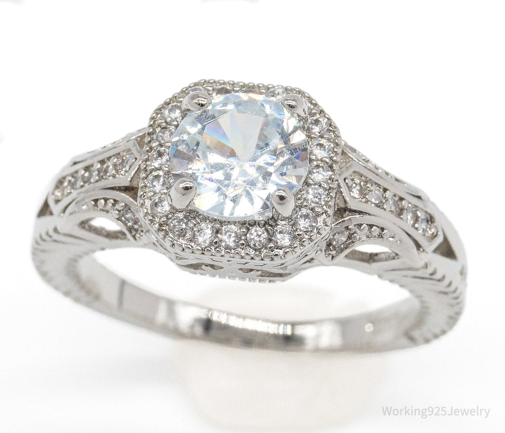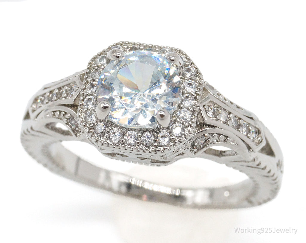 Vintage Cubic Zirconia Sterling Silver Ring - Size 8.75