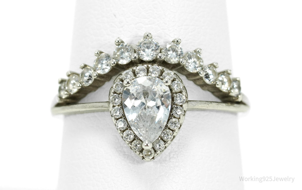 Vintage Cubic Zirconia Sterling Silver Ring - Size 8