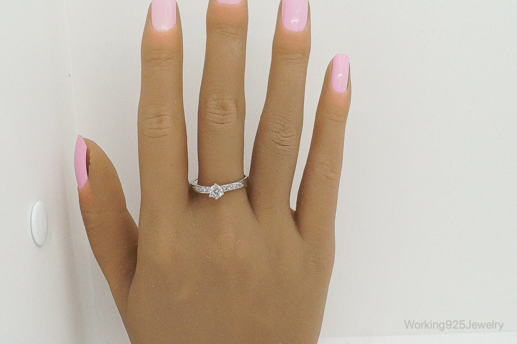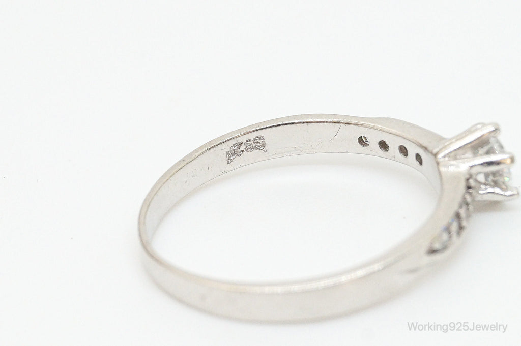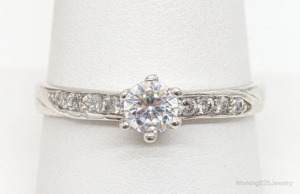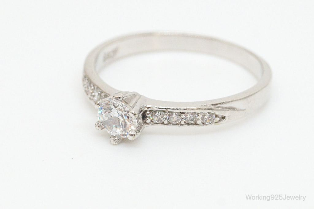 Vintage Cubic Zirconia Sterling Silver Ring - Size 9.75