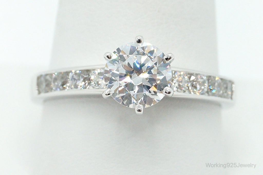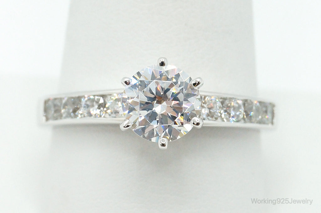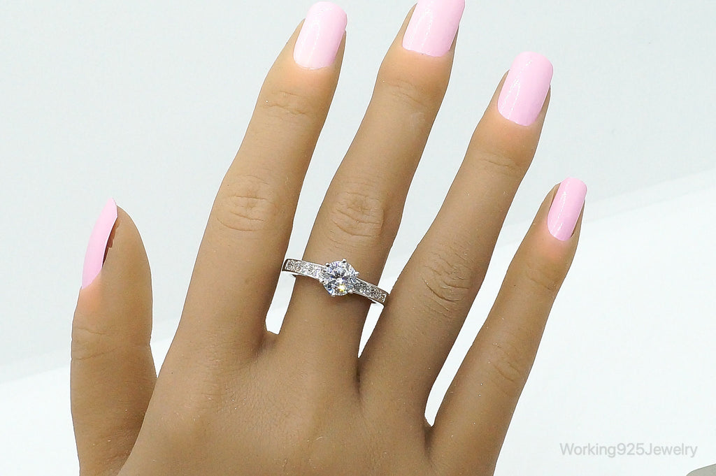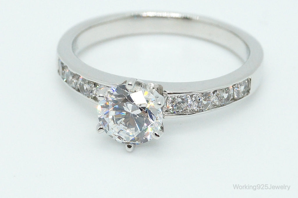 Vintage Cubic Zirconia Sterling Silver Statement Ring - Size 10