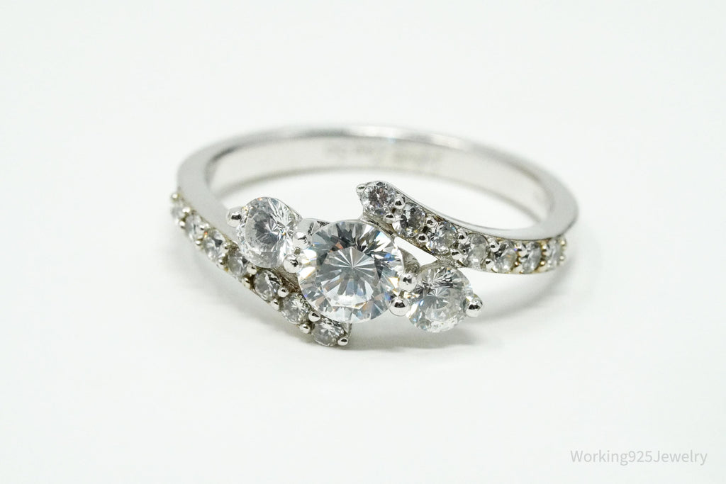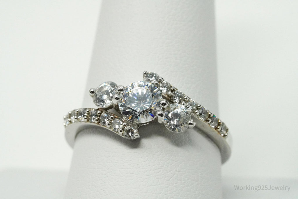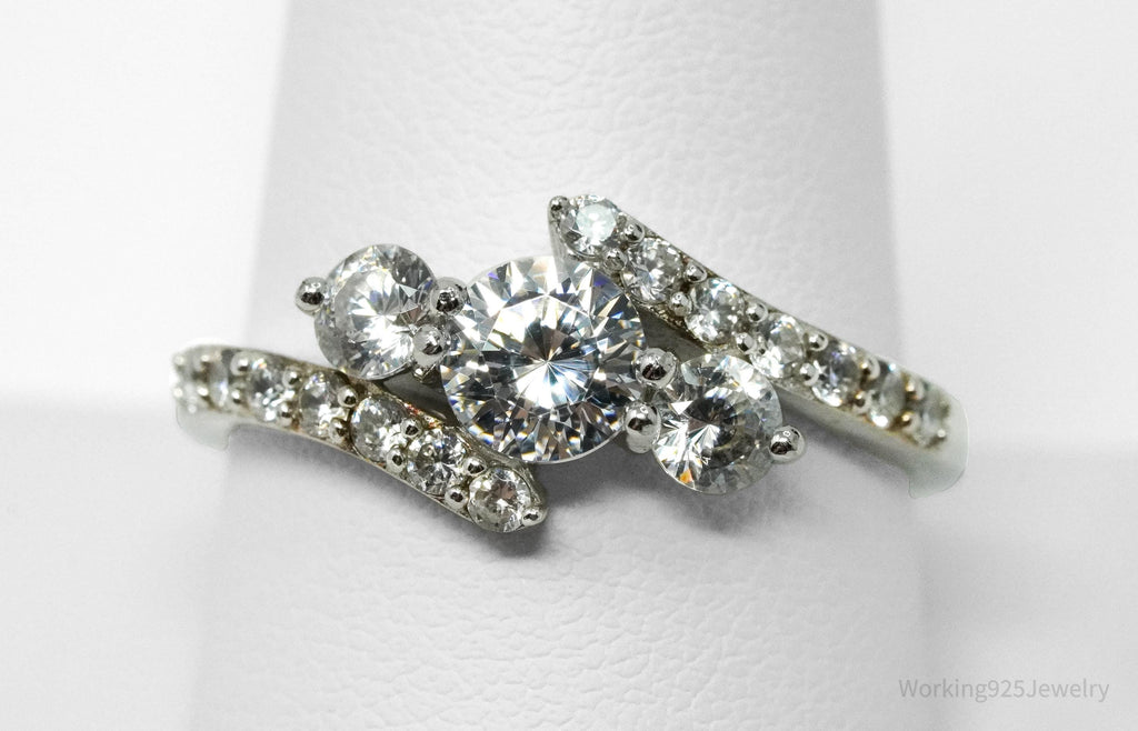 Vintage Cubic Zirconia Sterling Silver Statement Ring - Size 10