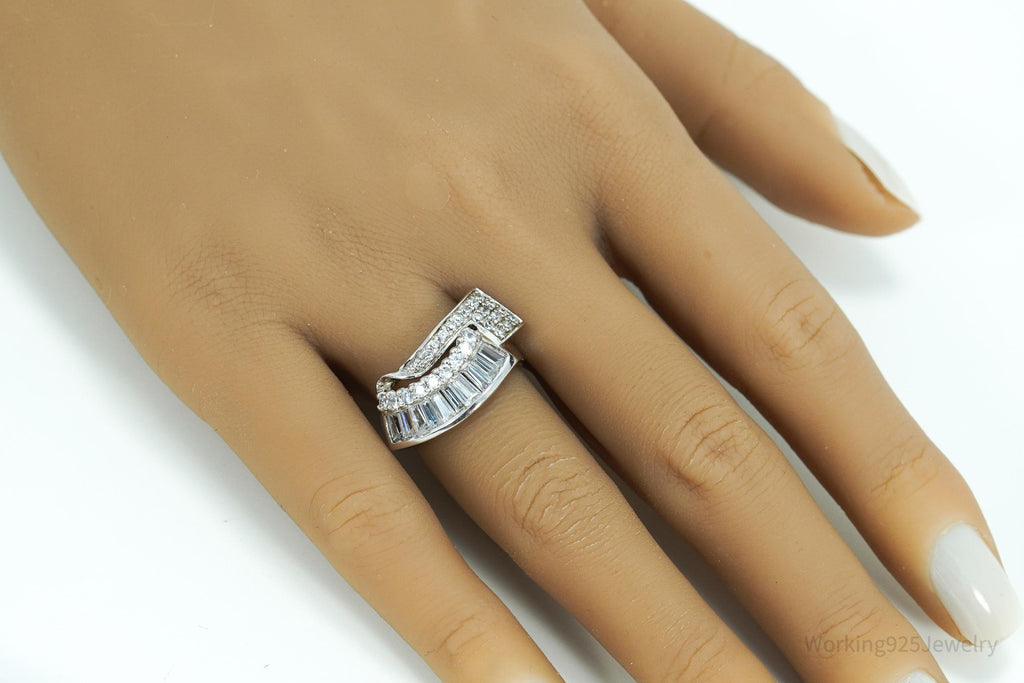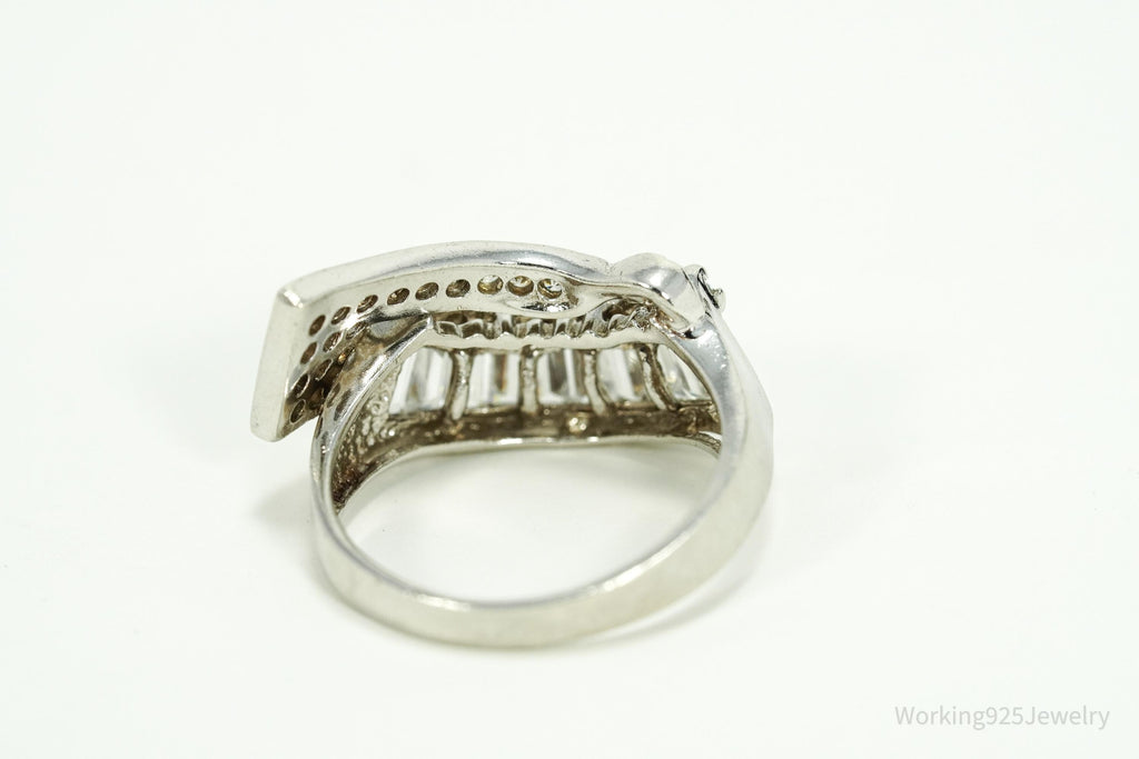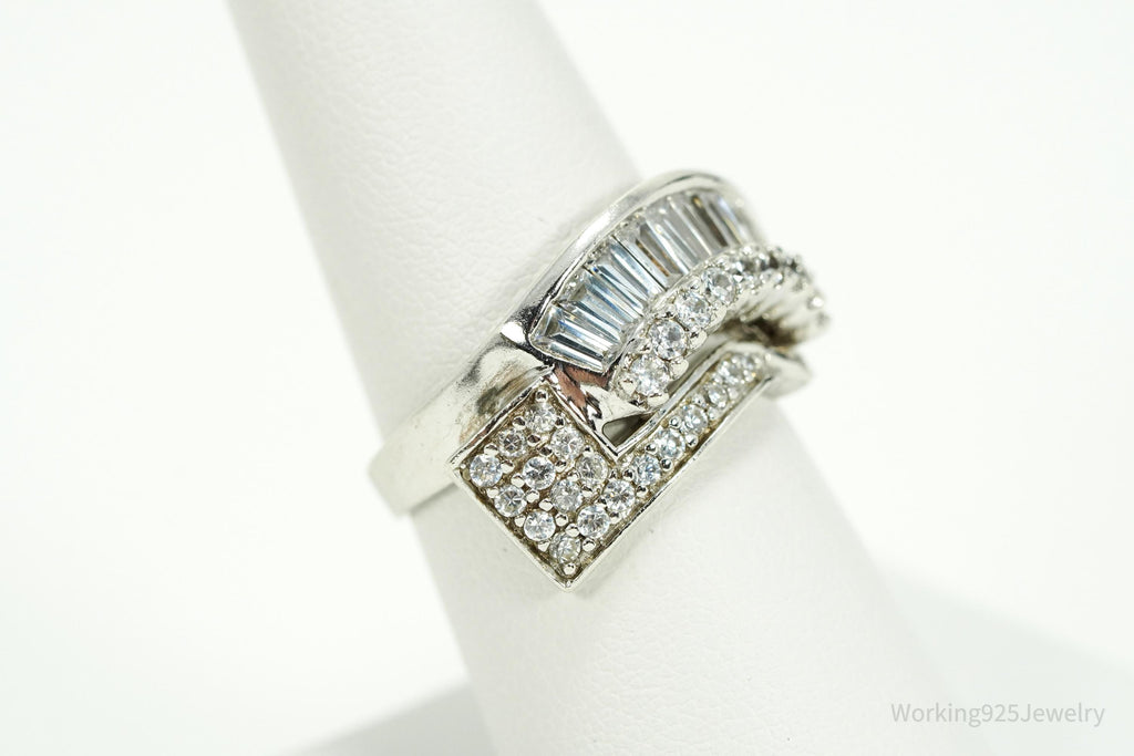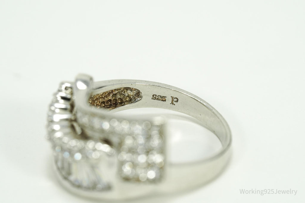 Vintage Cubic Zirconia Sterling Silver Statement Ring - Sz 7.5