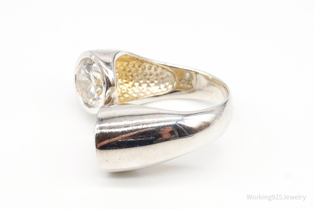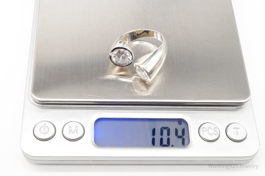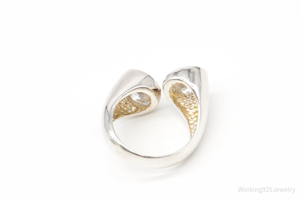 Vintage Cubic Zirconia Sterling Silver Wrap Ring - Size 8.5 Adjustable