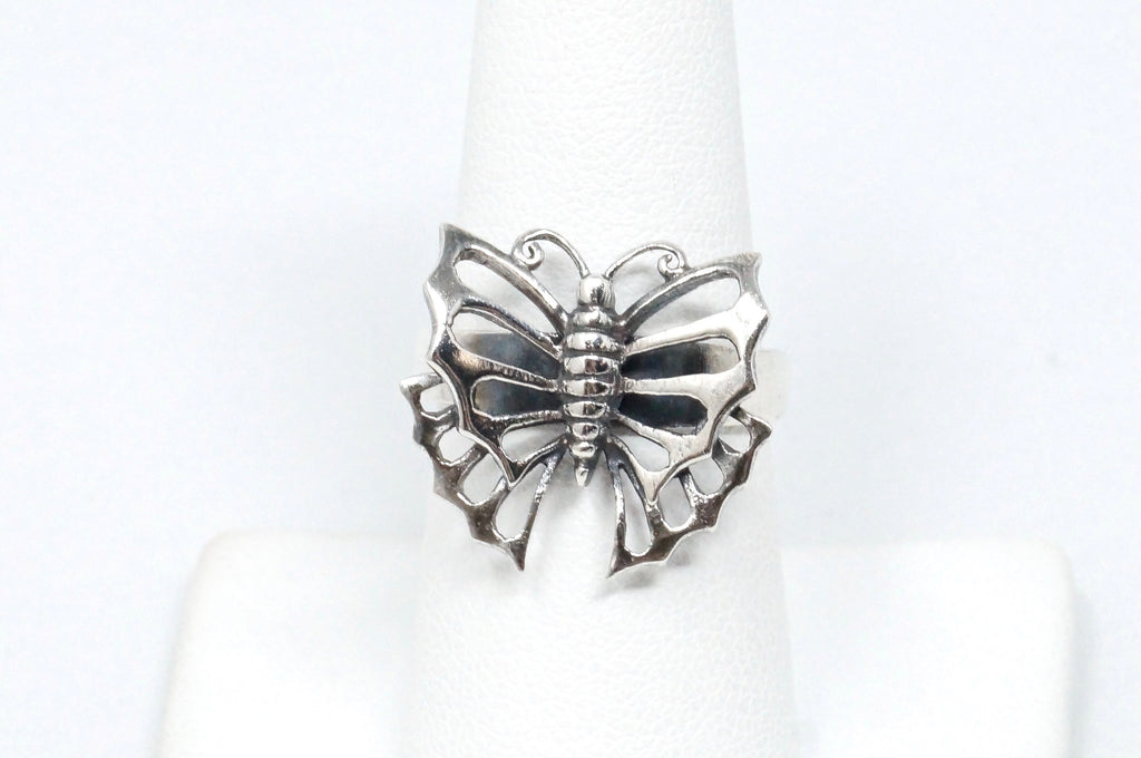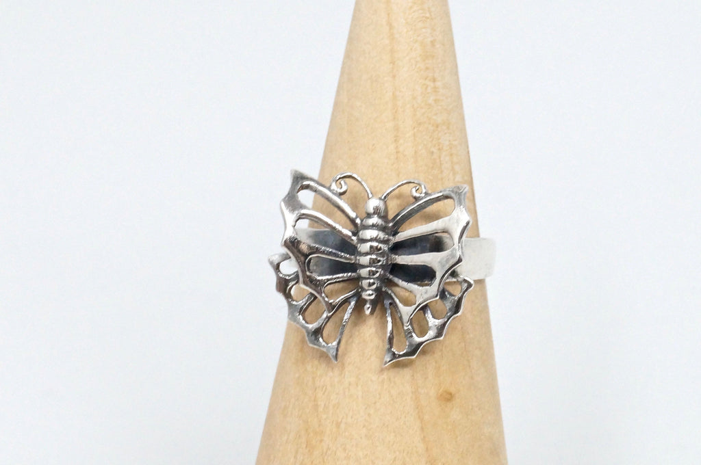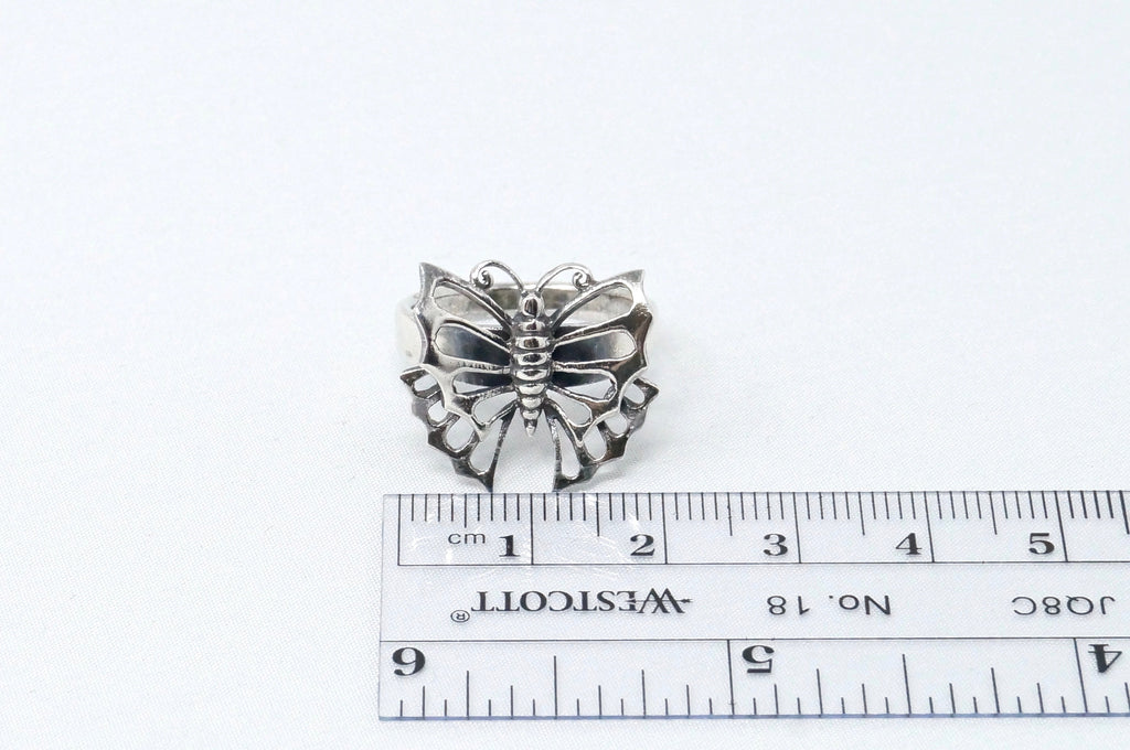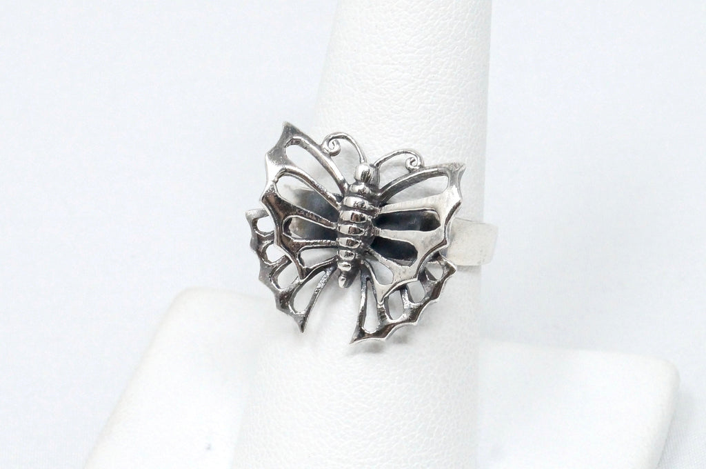 Vintage Cut Out 3D Butterfly Design Sterling Silver Ring - Size 8.5