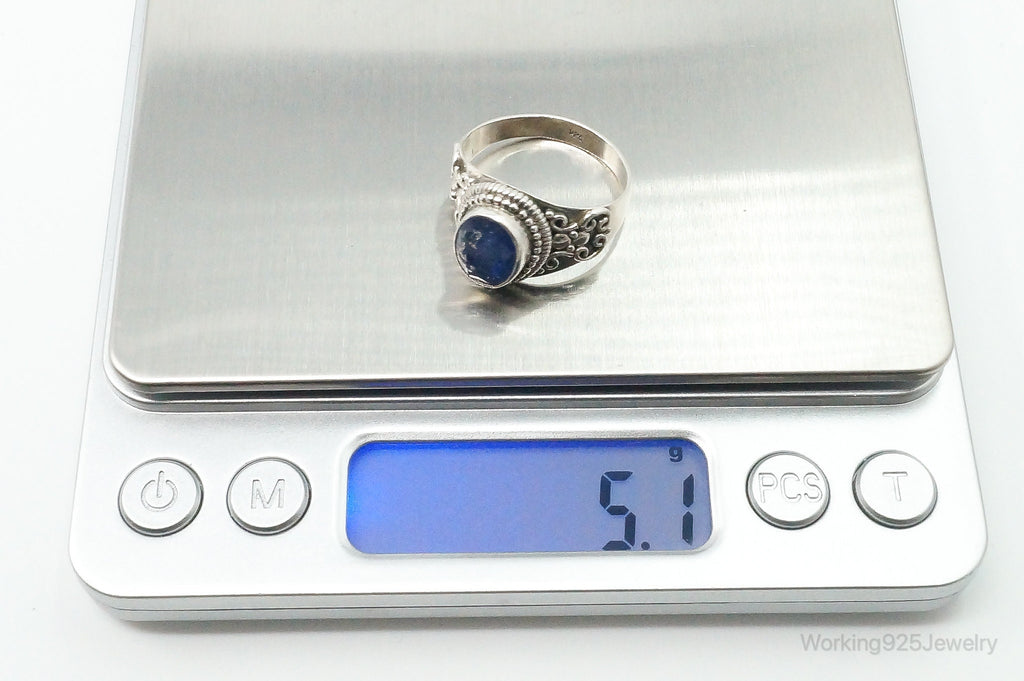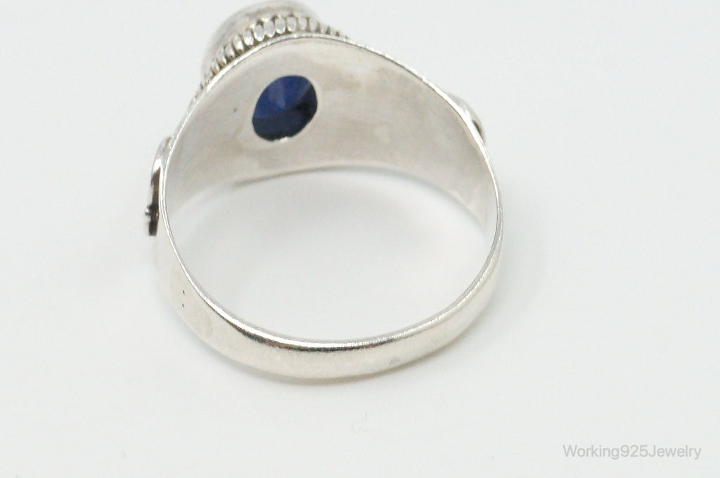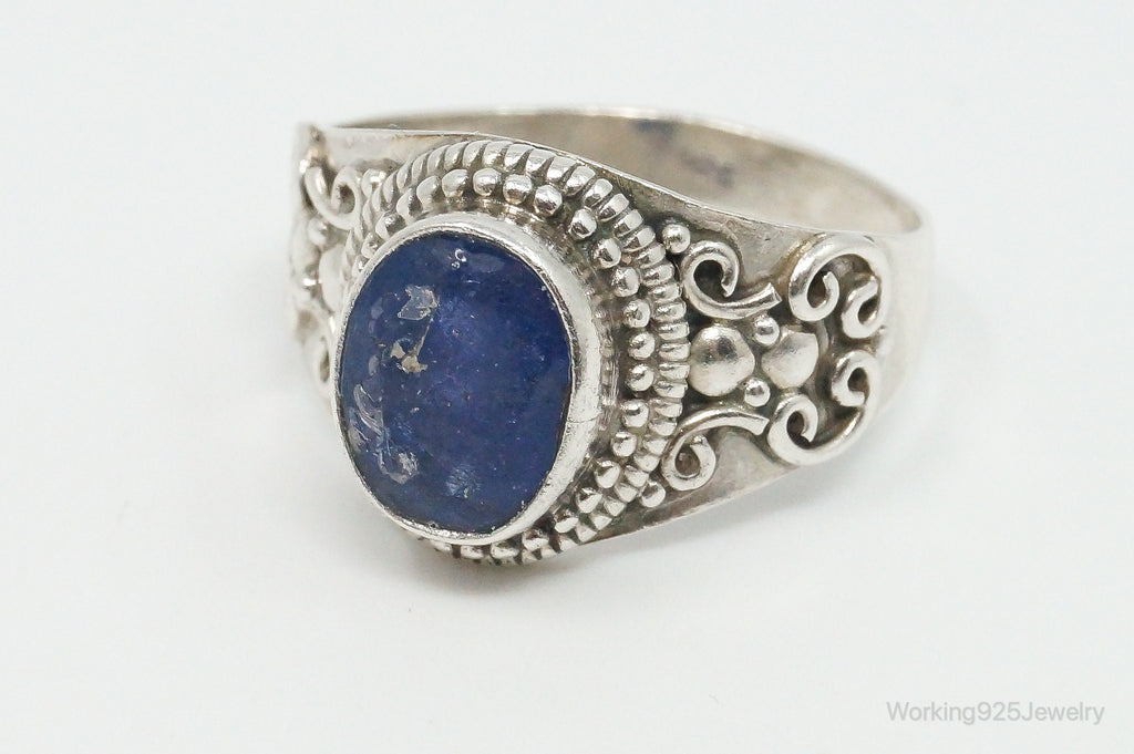 Vintage Dark Blue Gemstone Bali Style Sterling Silver Ring Size 10