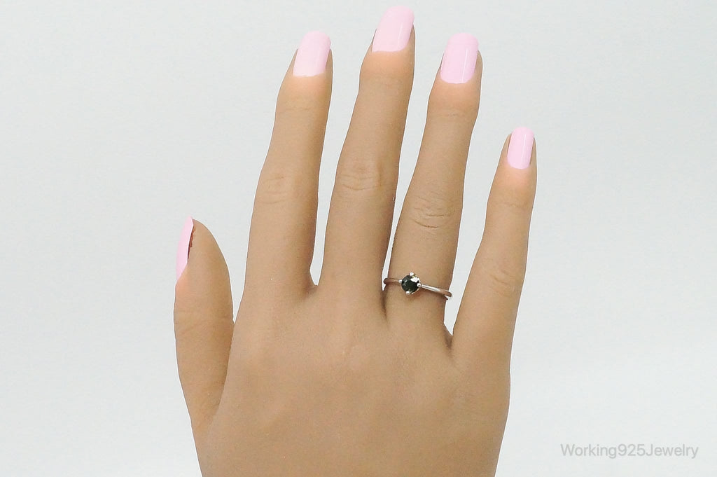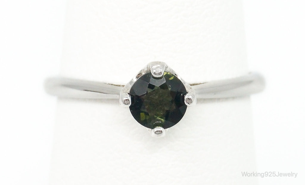 Vintage Dark Green Peridot Sterling Silver Ring - Size 6.5 Adjustable