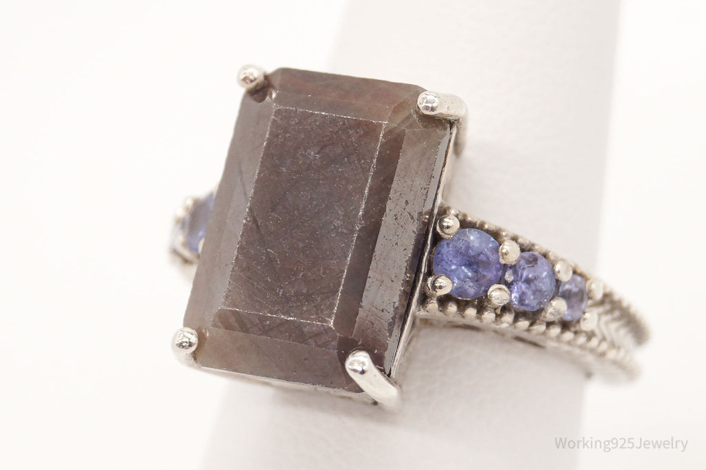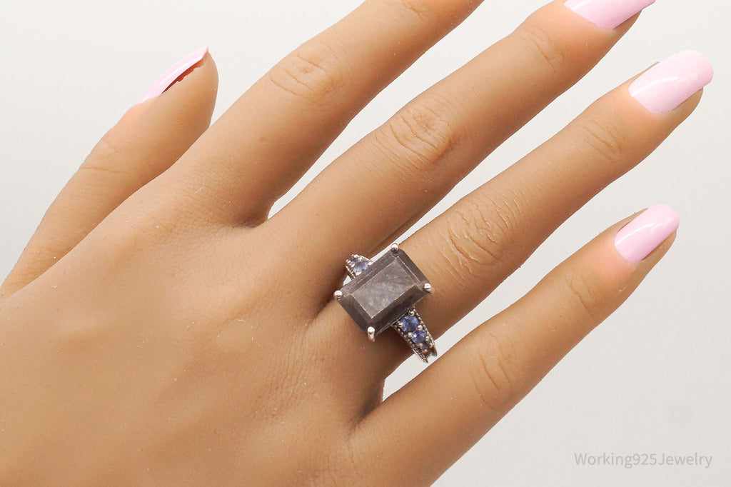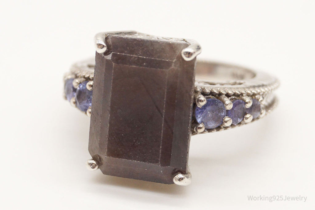 Vintage Dark Rutilated Quartz Iolite Sterling Silver Ring - Size 6.25