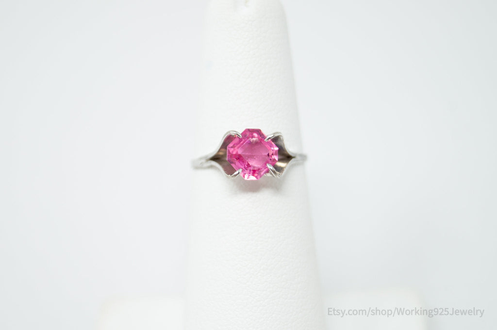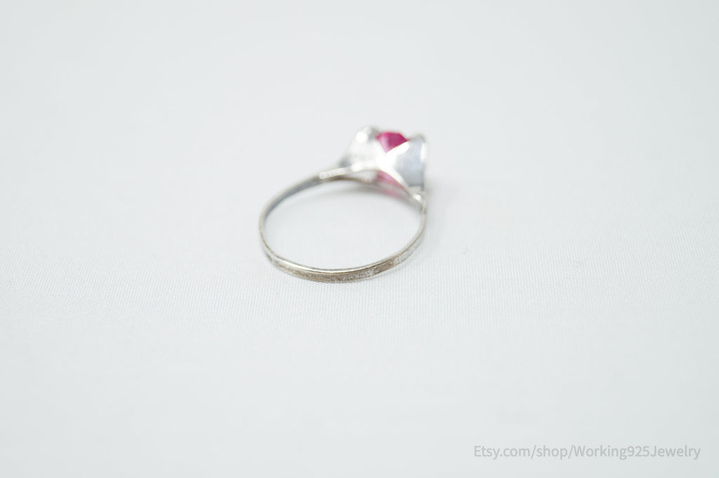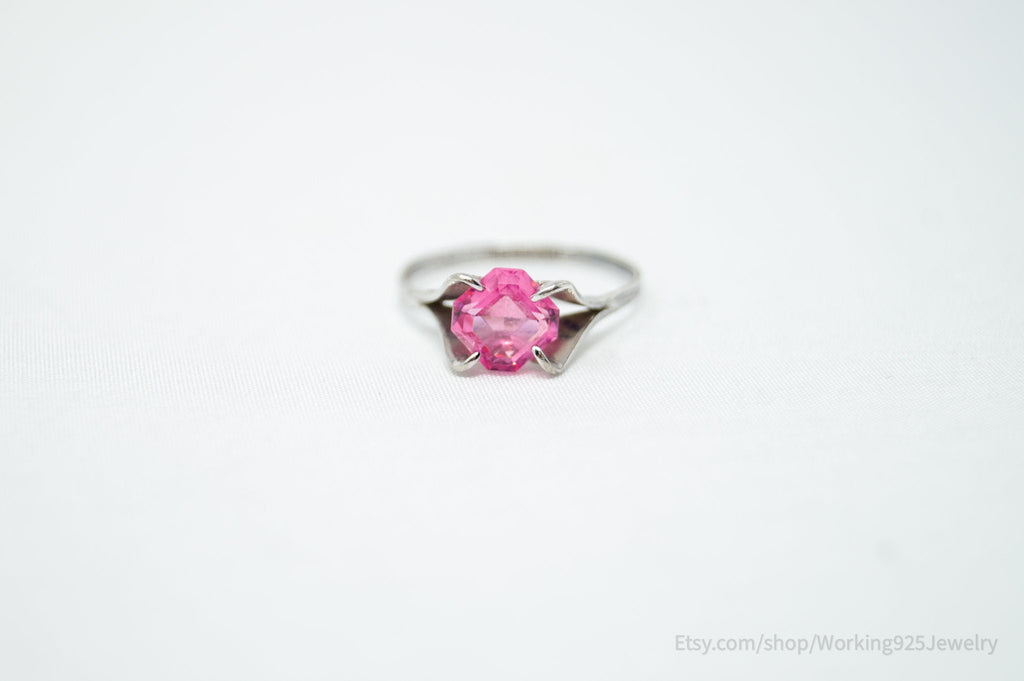 Vintage Delicate Joseph Esposito Espo Pink Glass Sterling Silver Ring Size 4.75