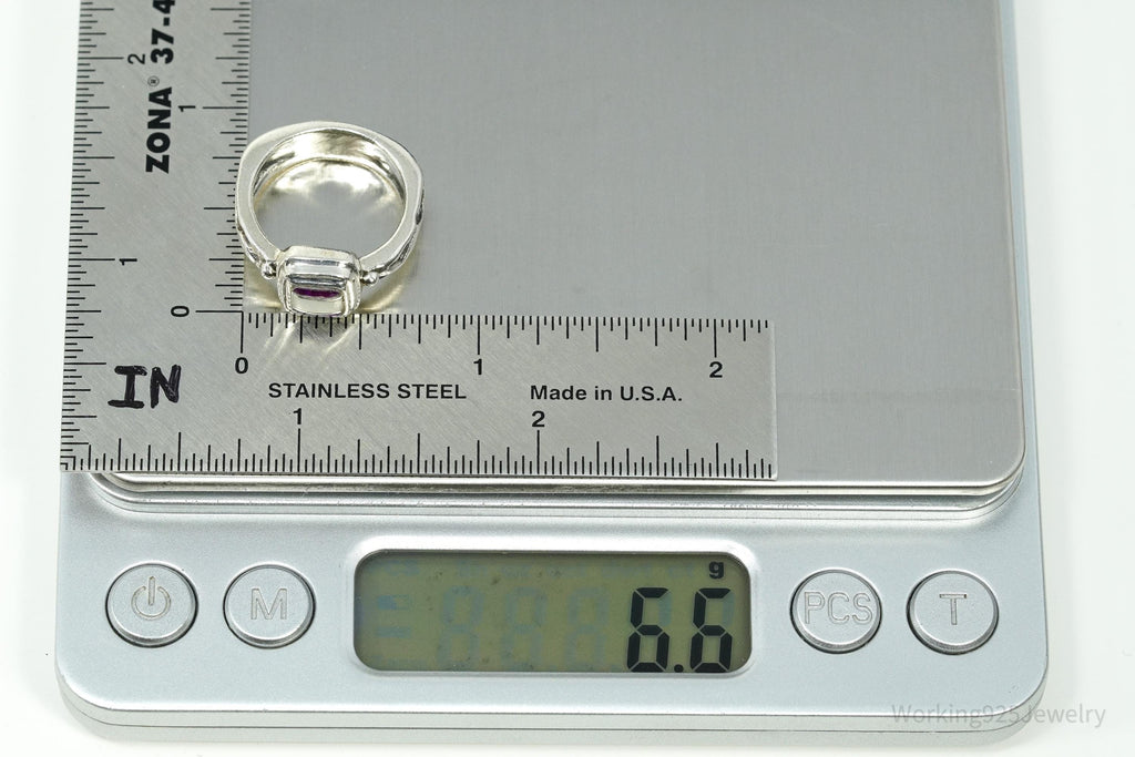 Vintage Southwestern DeSantis Mother Of Pearl & Charoite Inlay Sterling Silver Ring - Size 5.75