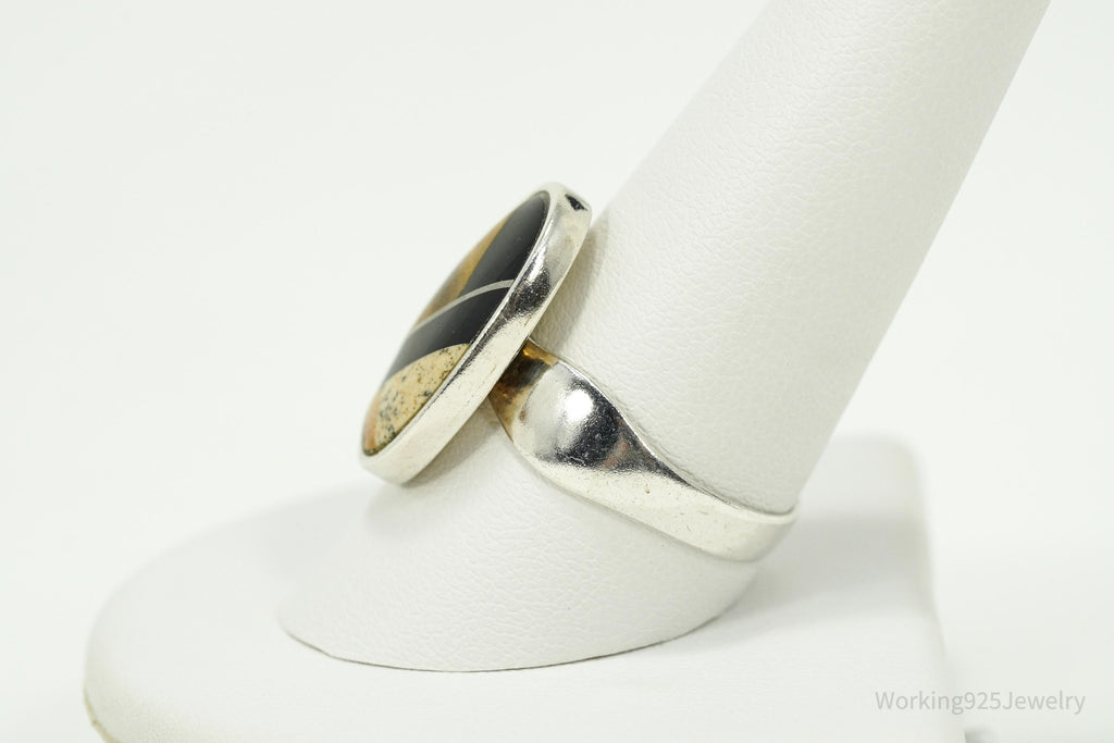 Vintage Desert Rose Trading Co Multi Stone Inlay Sterling Silver Ring Size 10.25 - Tiger's Eye - Black Onyx - Jasper