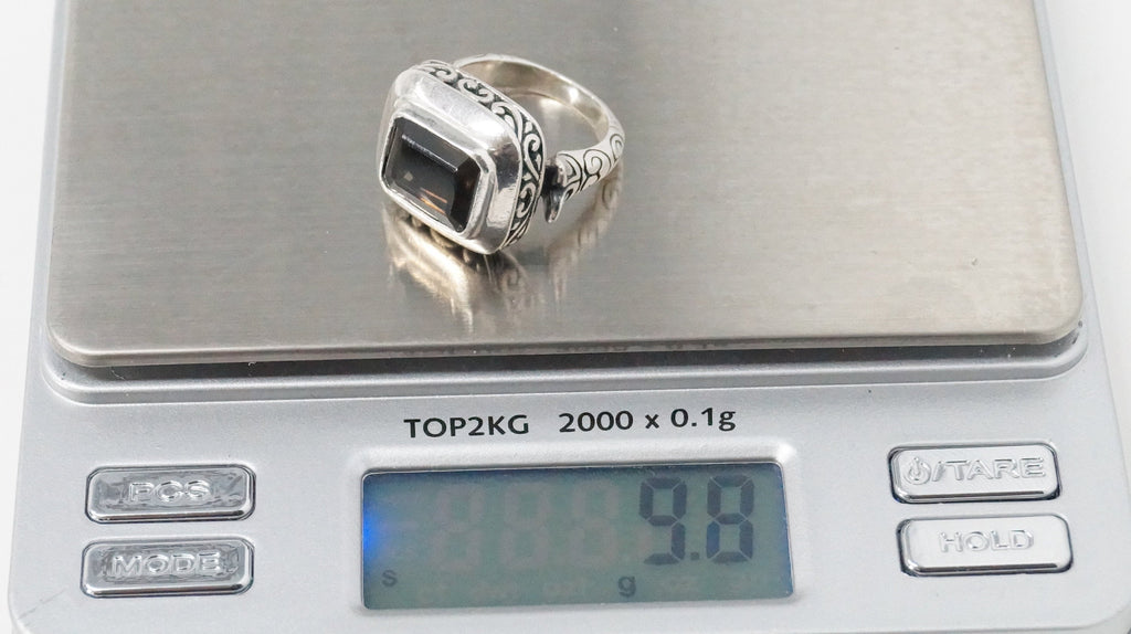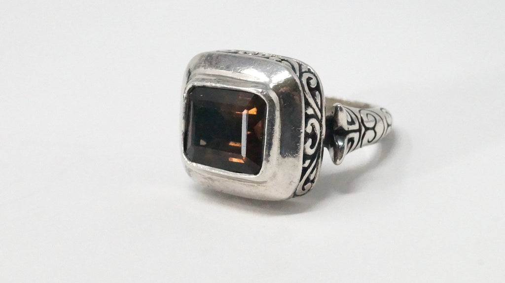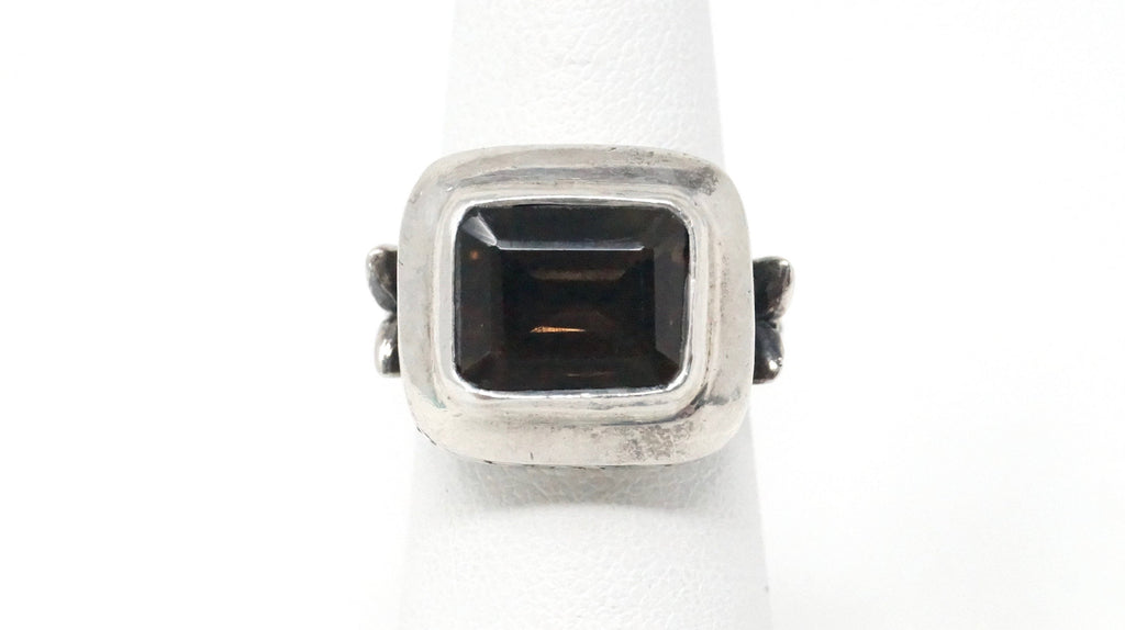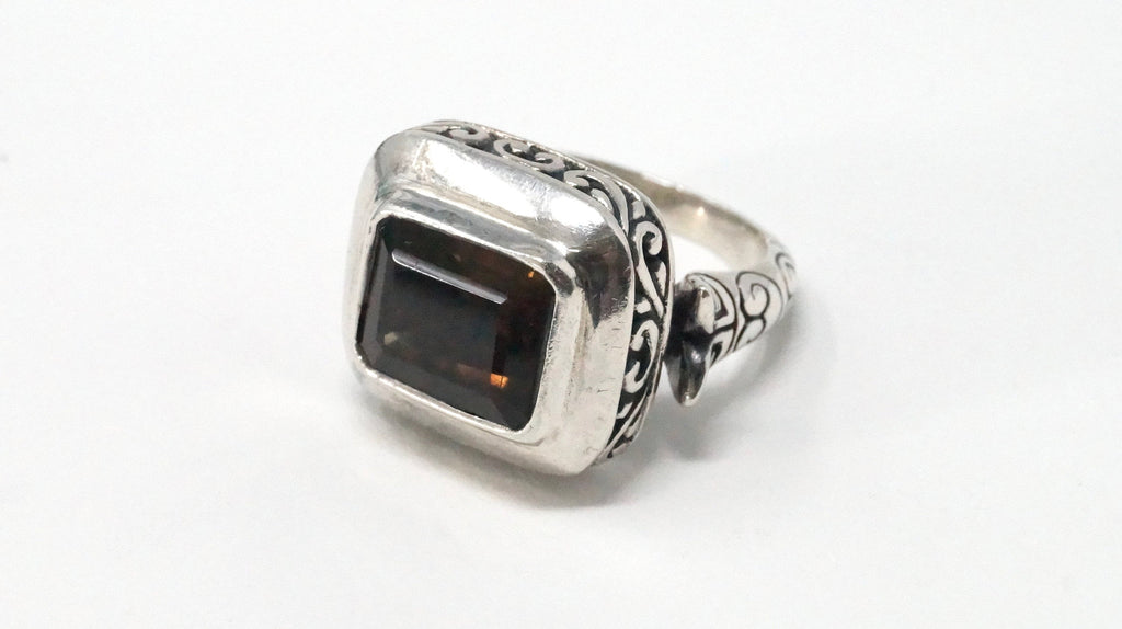 Vintage Designer AF Large Smoky Topaz Swirl Heart Sterling Silver Ring Size 5.5