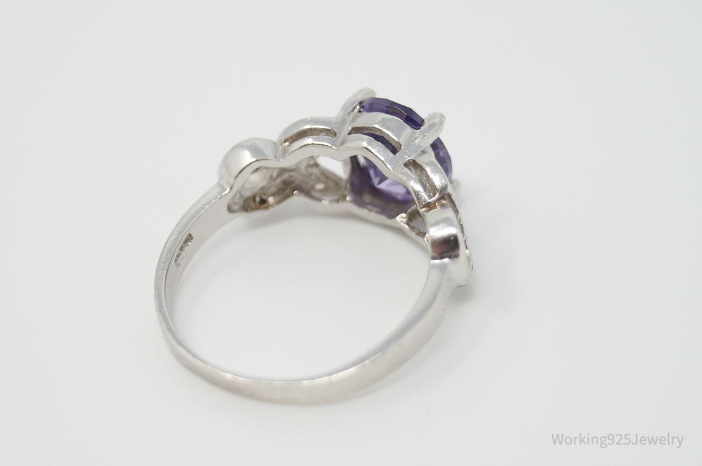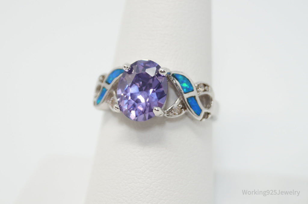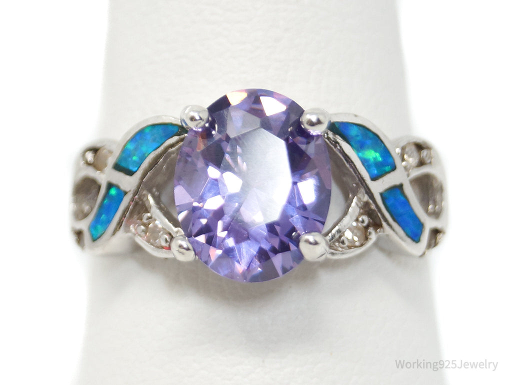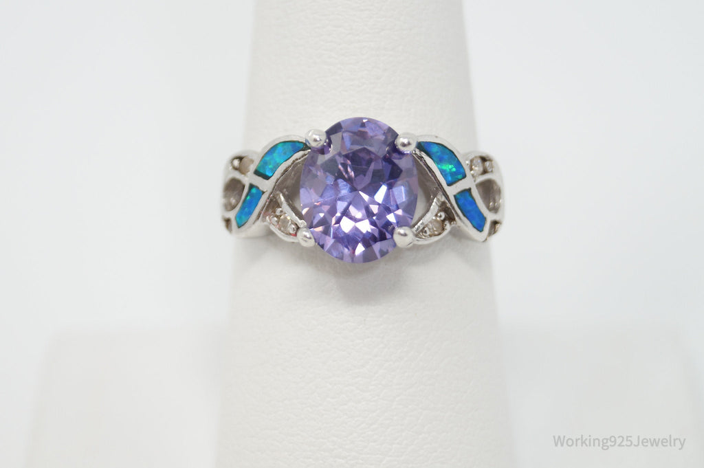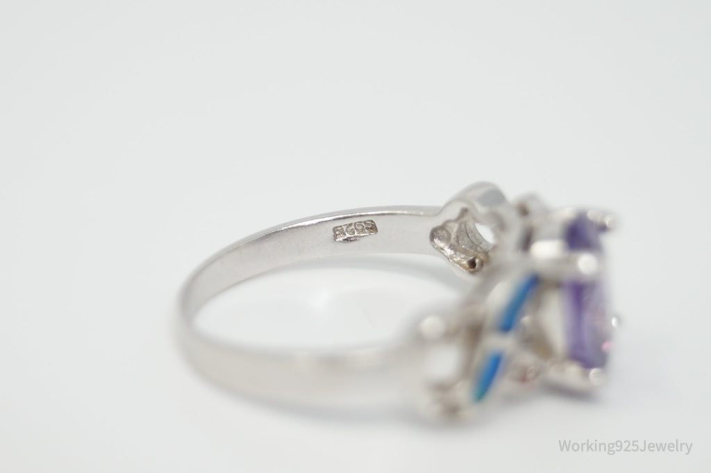 Vintage Designer Amethyst CZ Opal Sterling Silver Ring - Sz 8