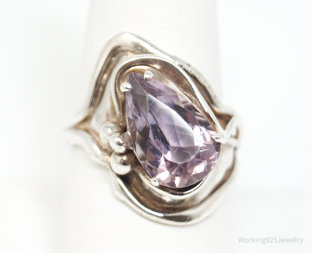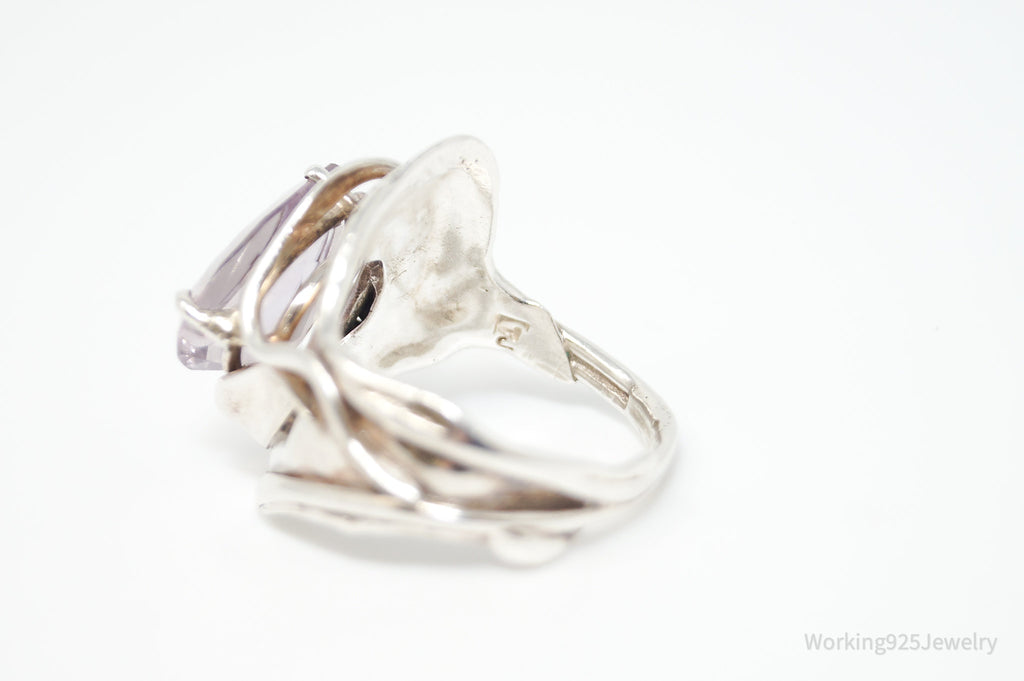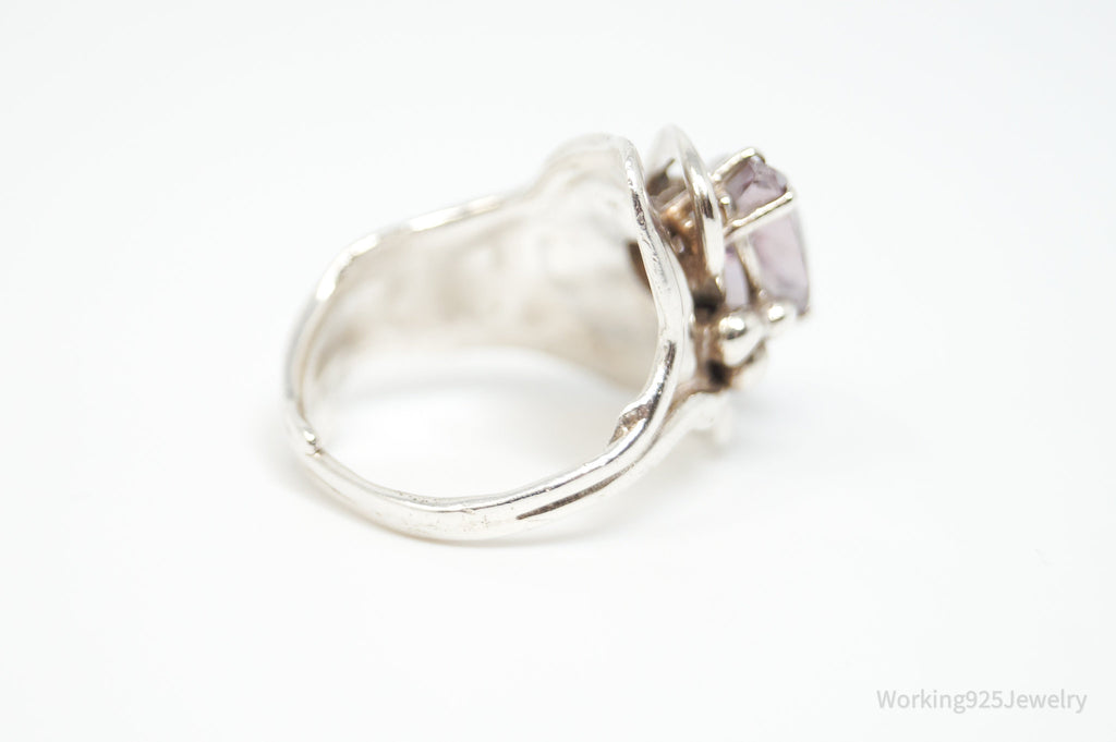 Vintage Designer Amethyst Modernist Sterling Silver Ring - Size 8.75