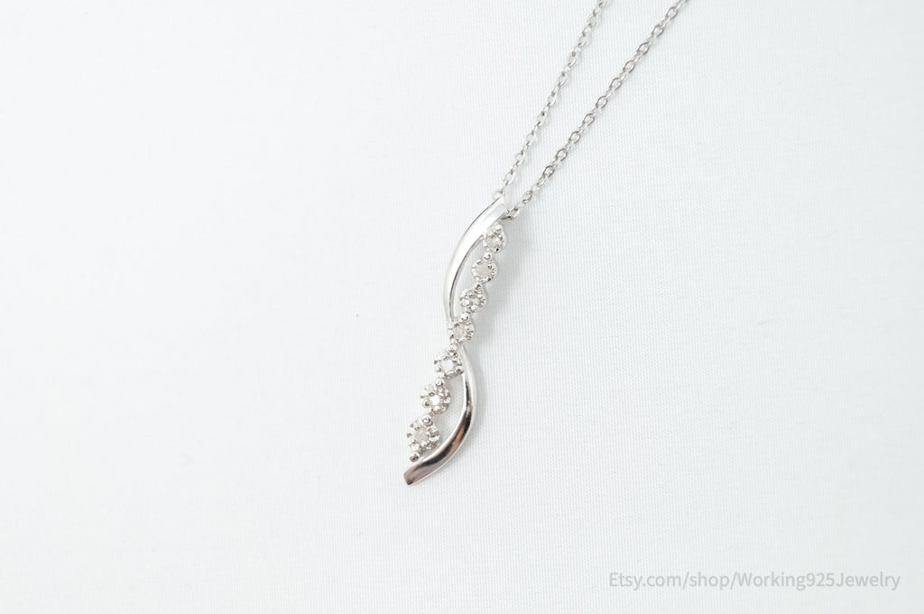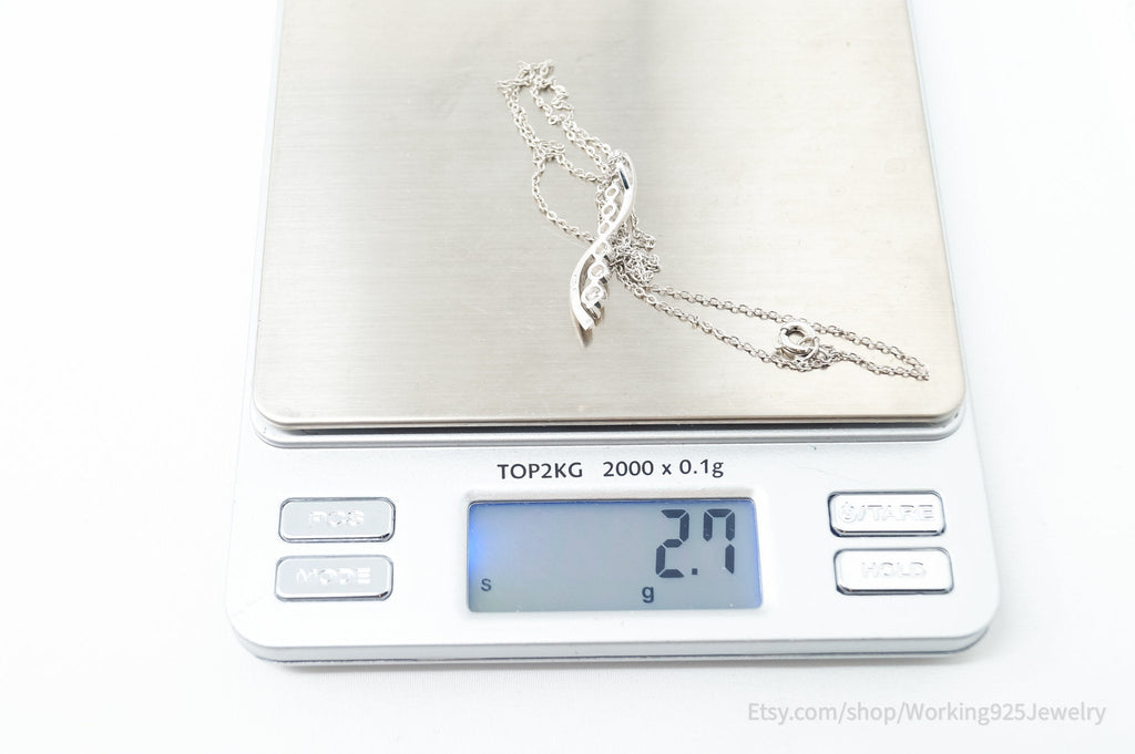 Vintage Designer Art Deco Cubic Zirconia Sterling Silver Necklace
