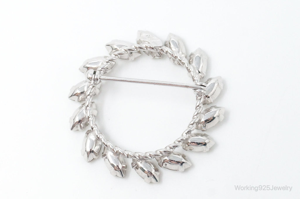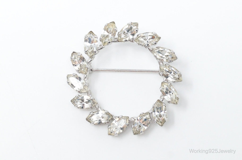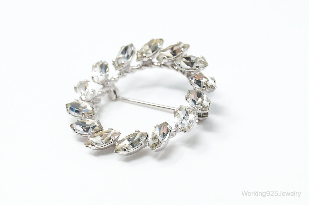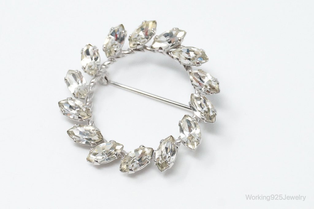 Vintage Designer Art Deco Rhinestone Sterling Silver Brooch Pin