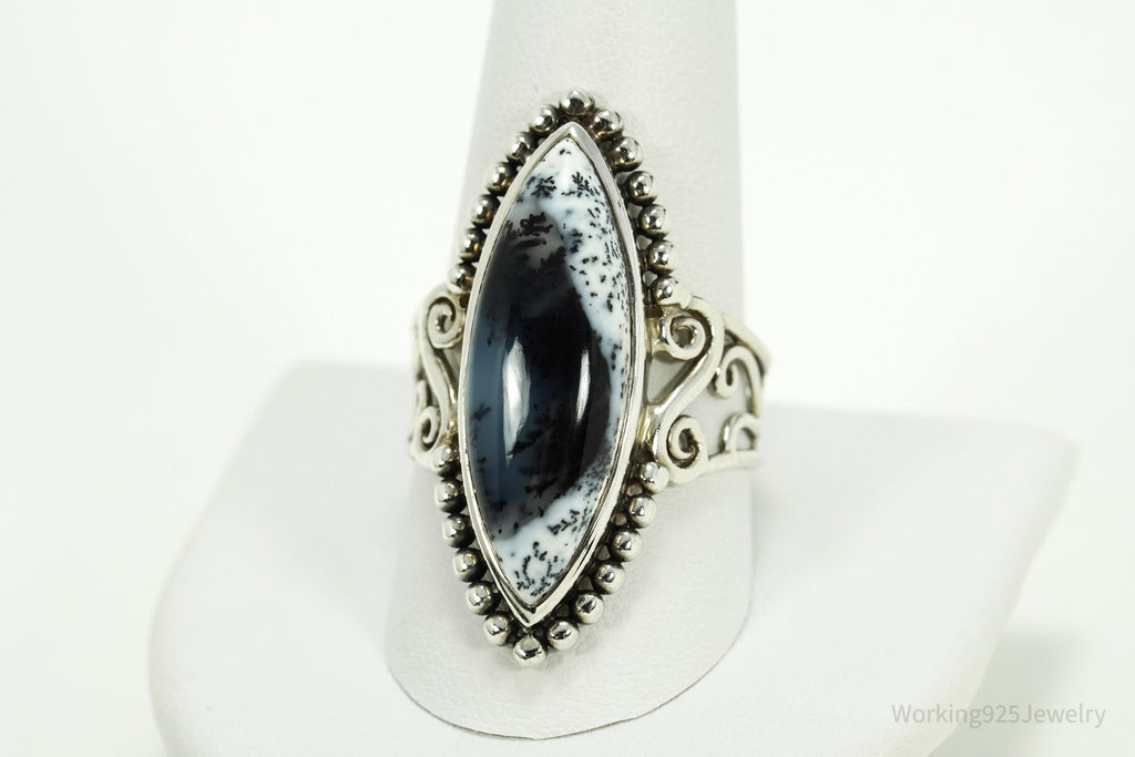 Vintage Designer Arya Dendritic Agate Sterling Silver Ring - Size 10.75