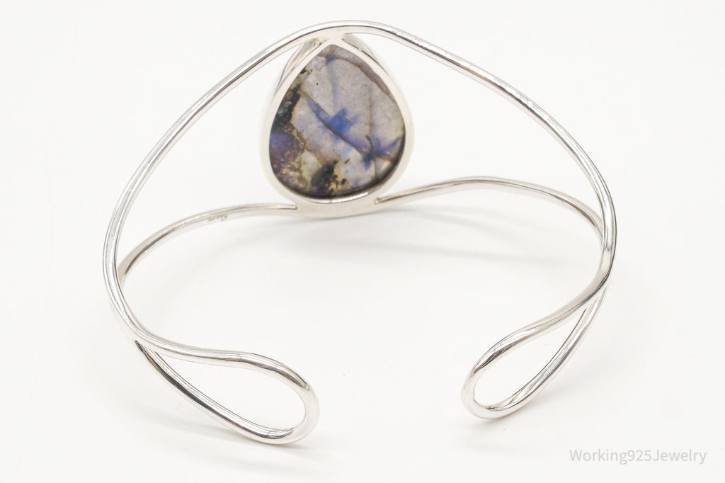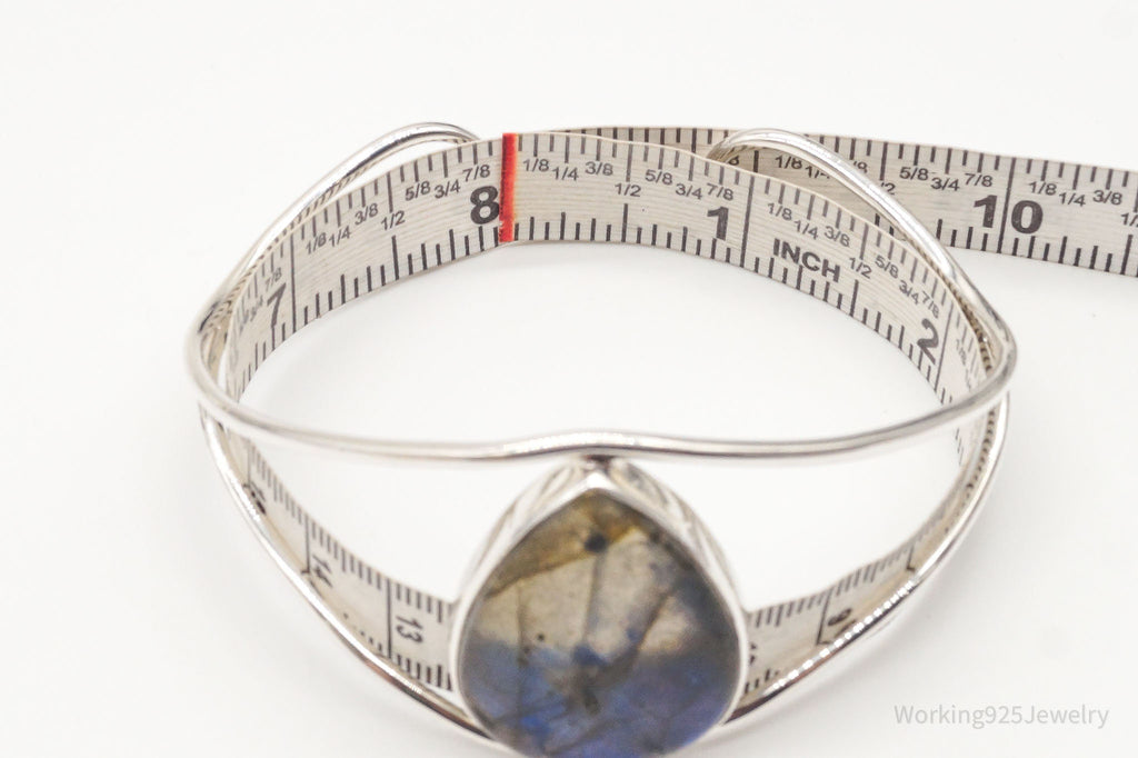Vintage Designer Arya Labradorite Sterling Silver Cuff Bracelet