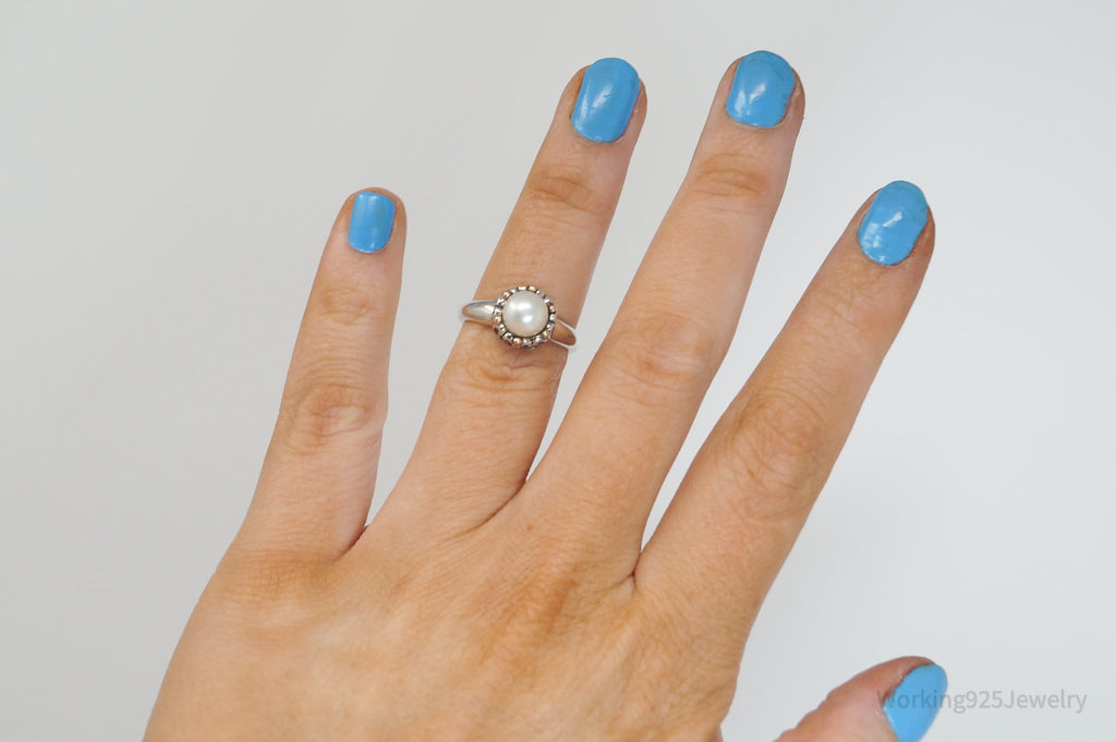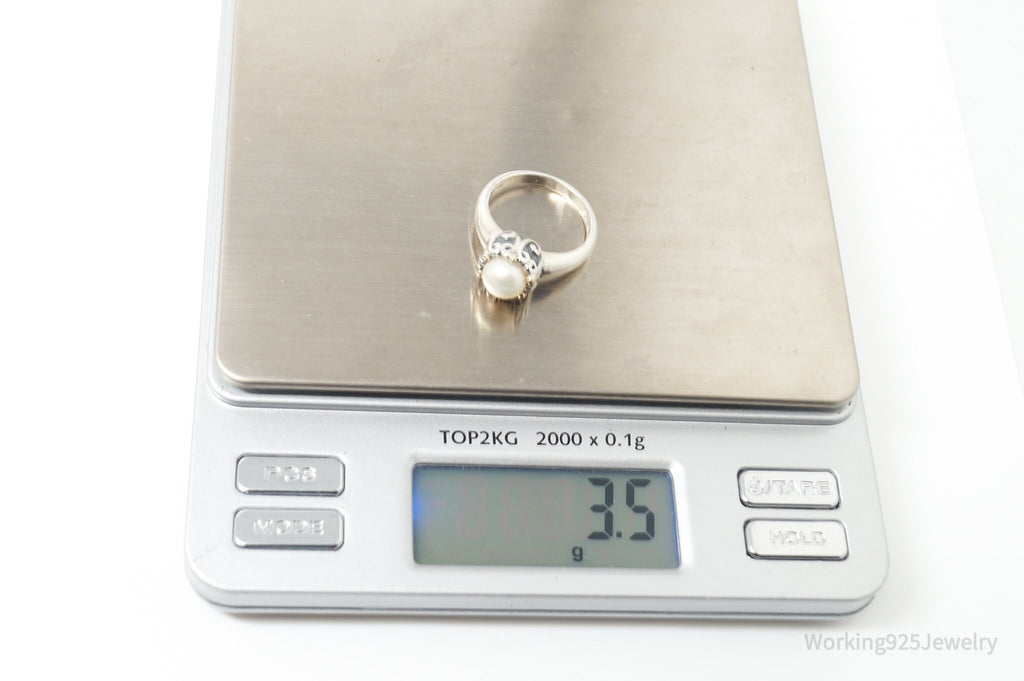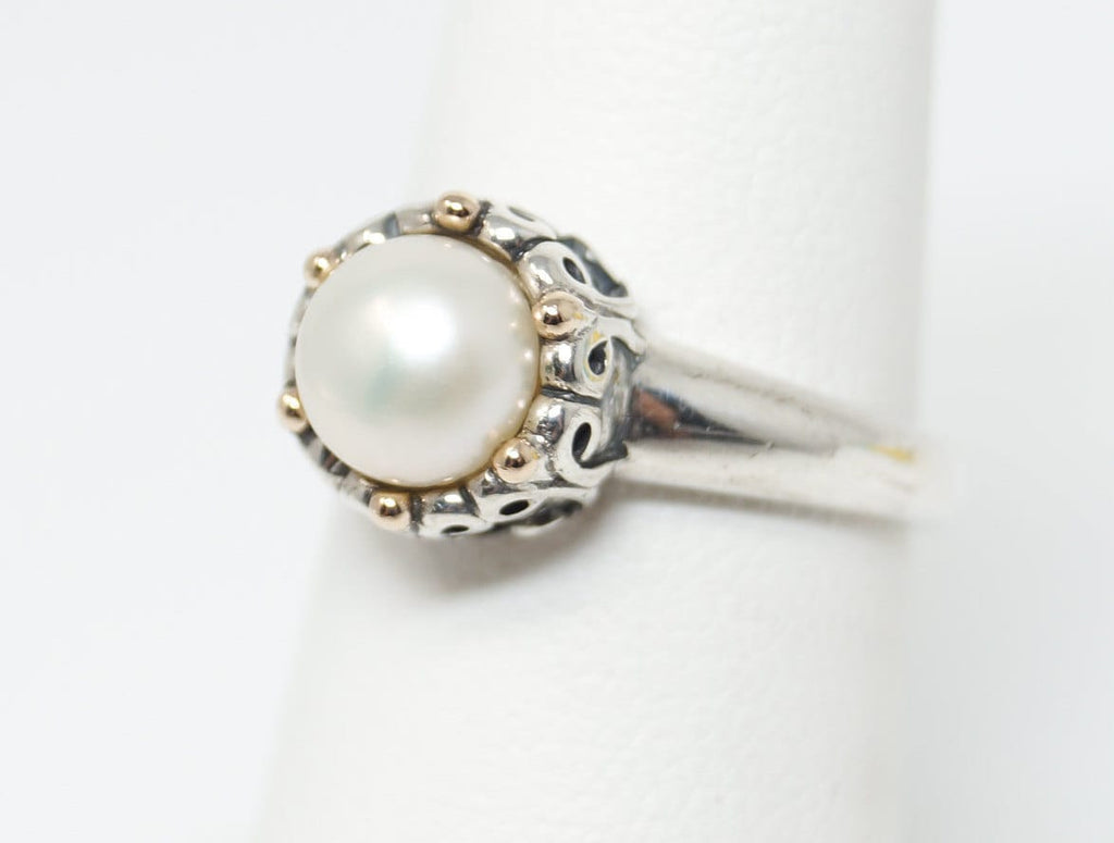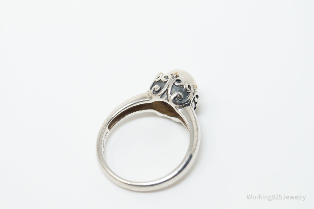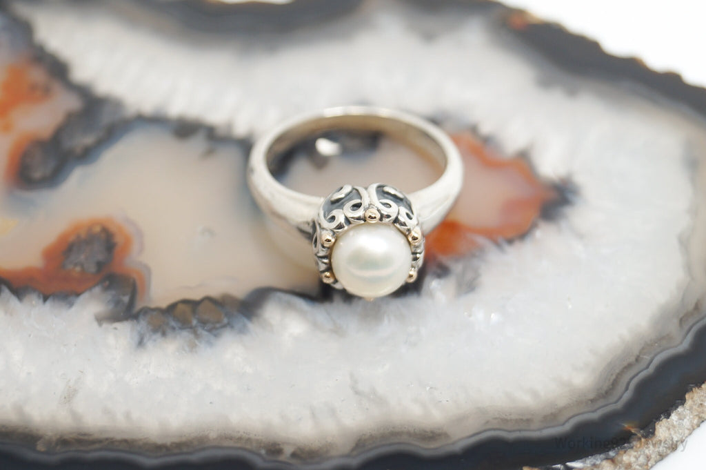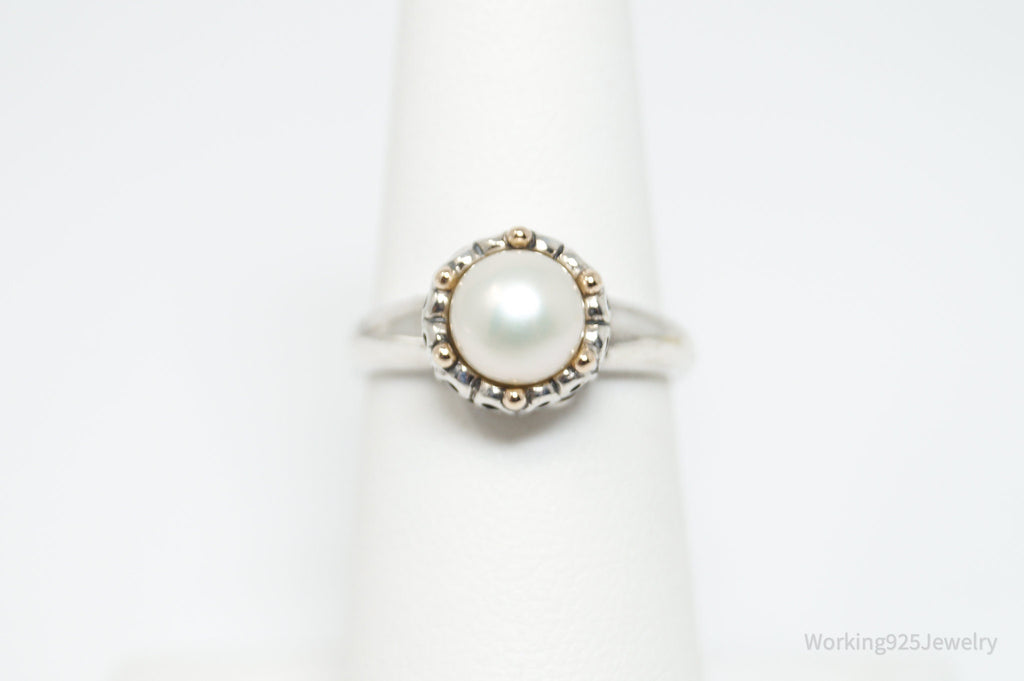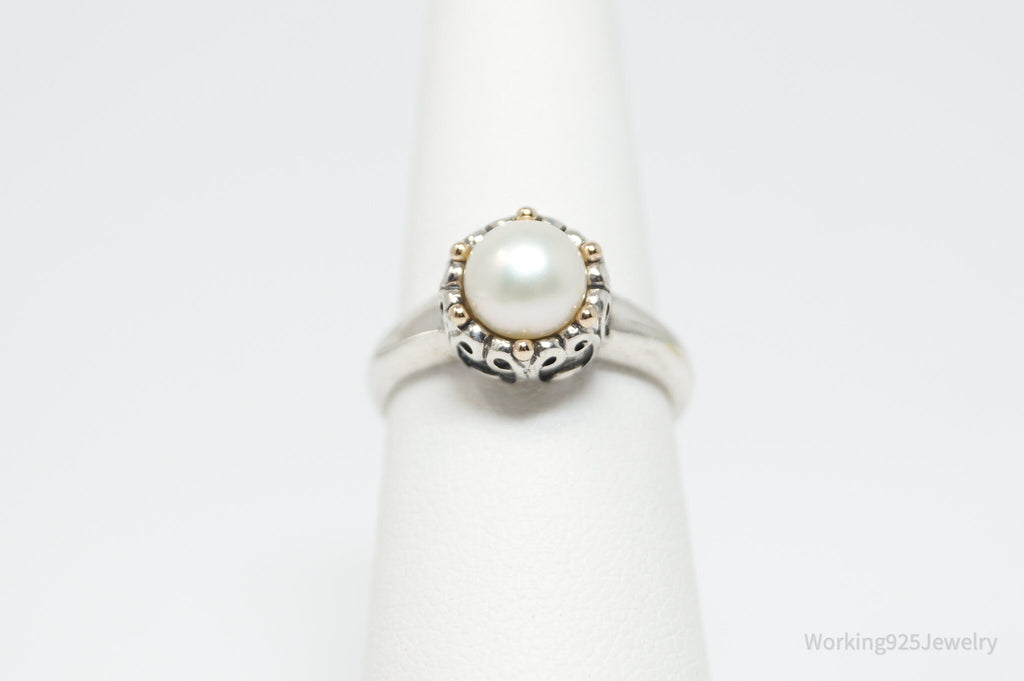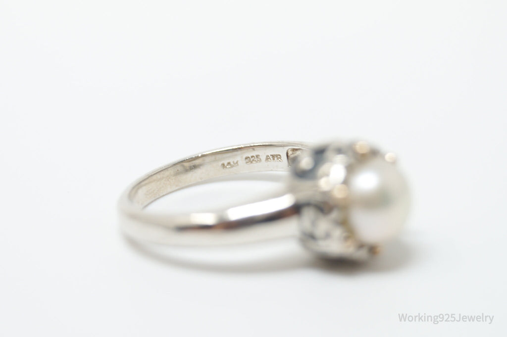 Vintage Designer ATR 14K Gold Pearl Sterling Silver Ring - Size 5.75