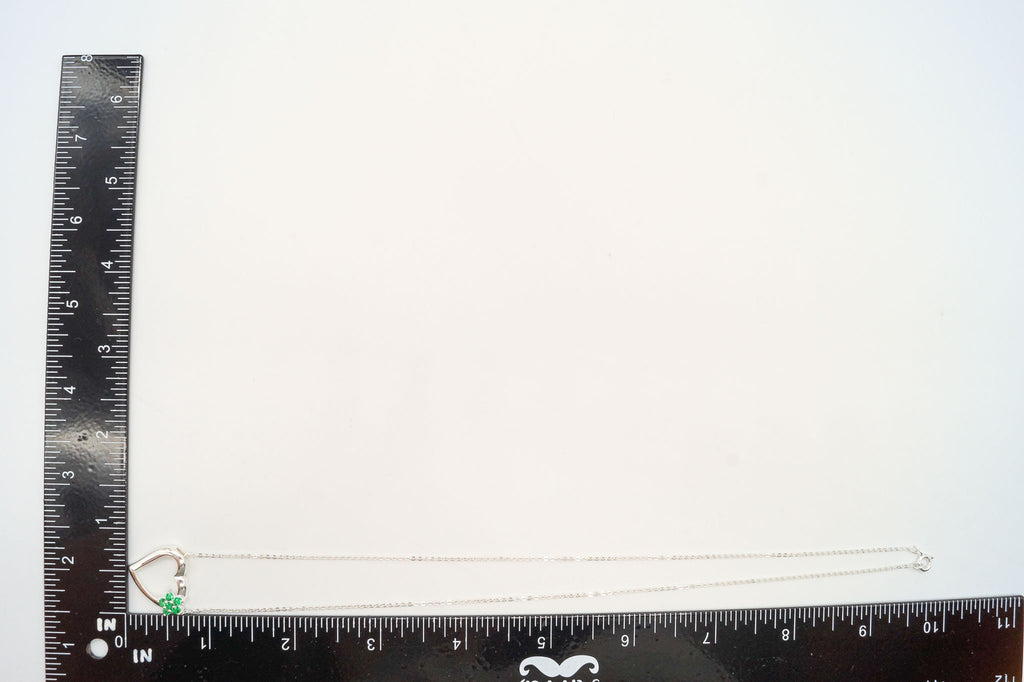Vintage Designer Avon Green Cubic Zirconia Heart Sterling Silver Necklace