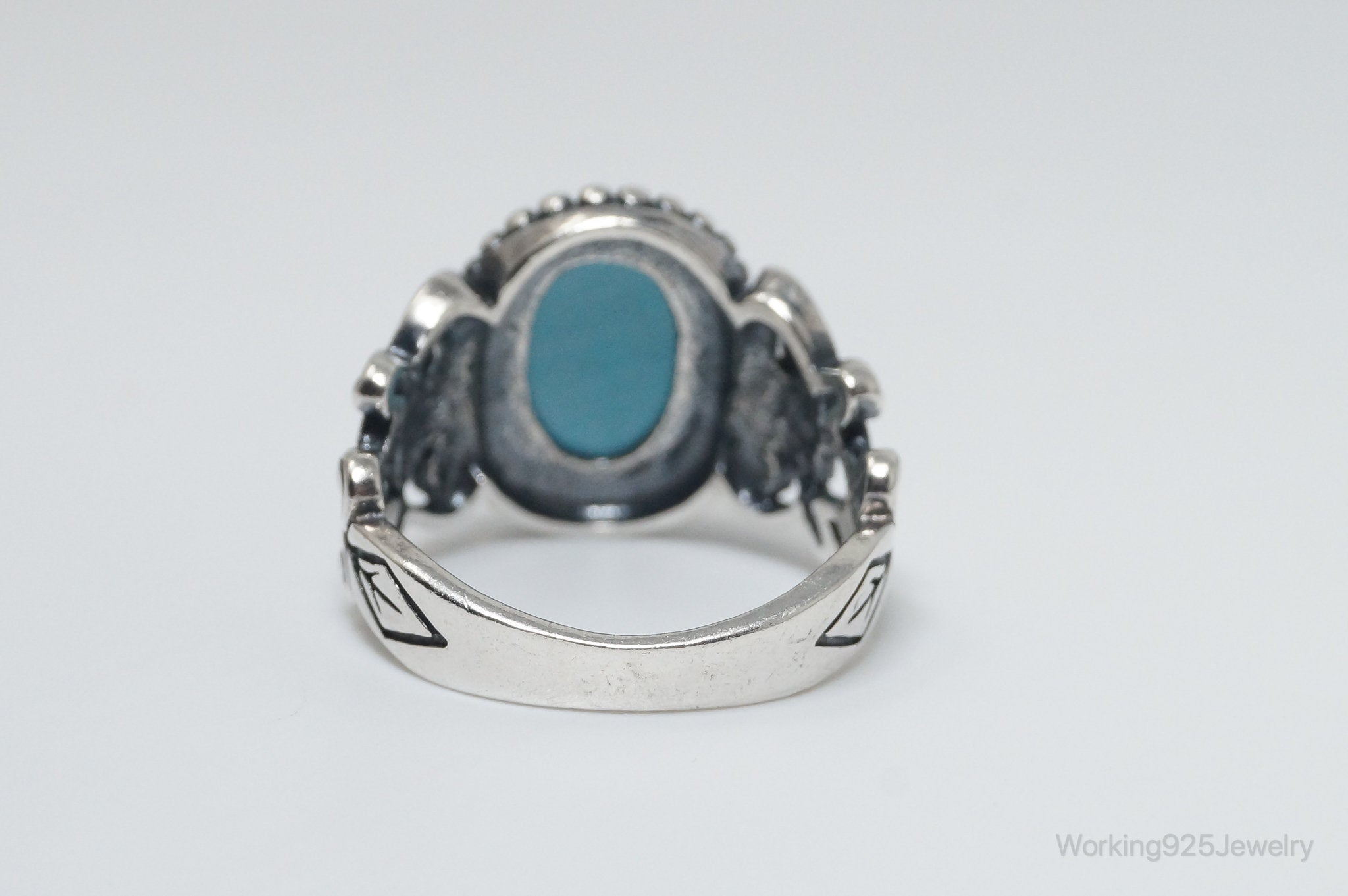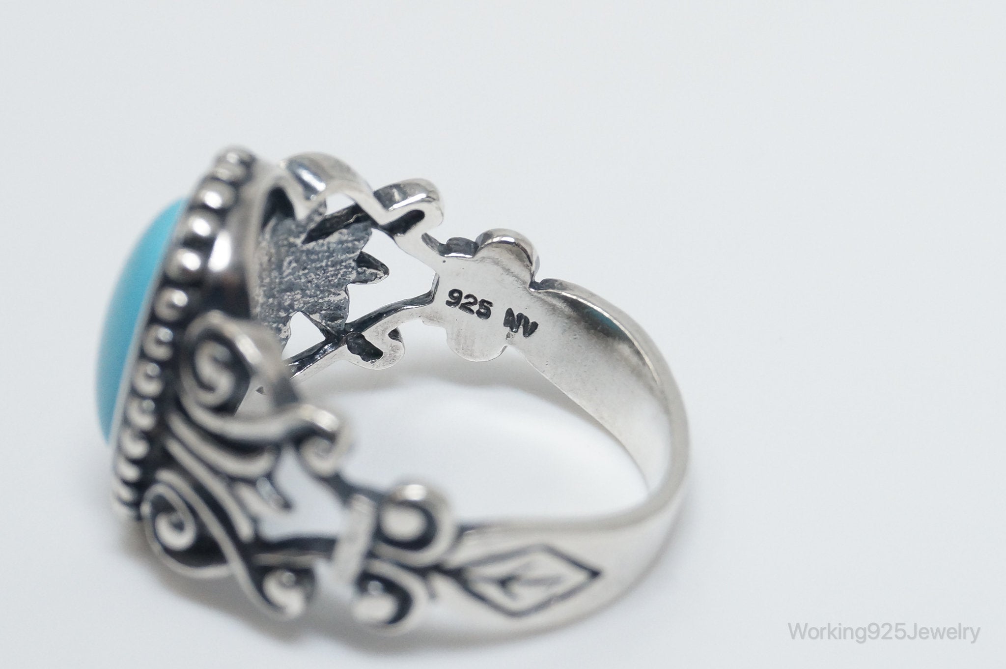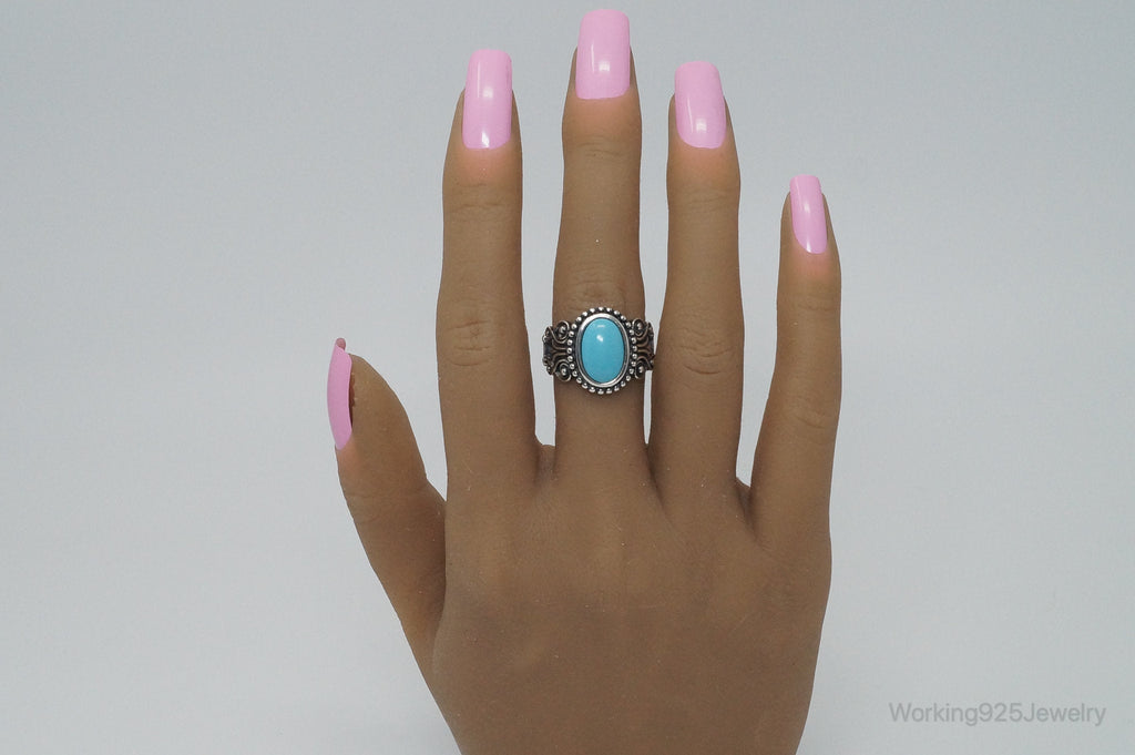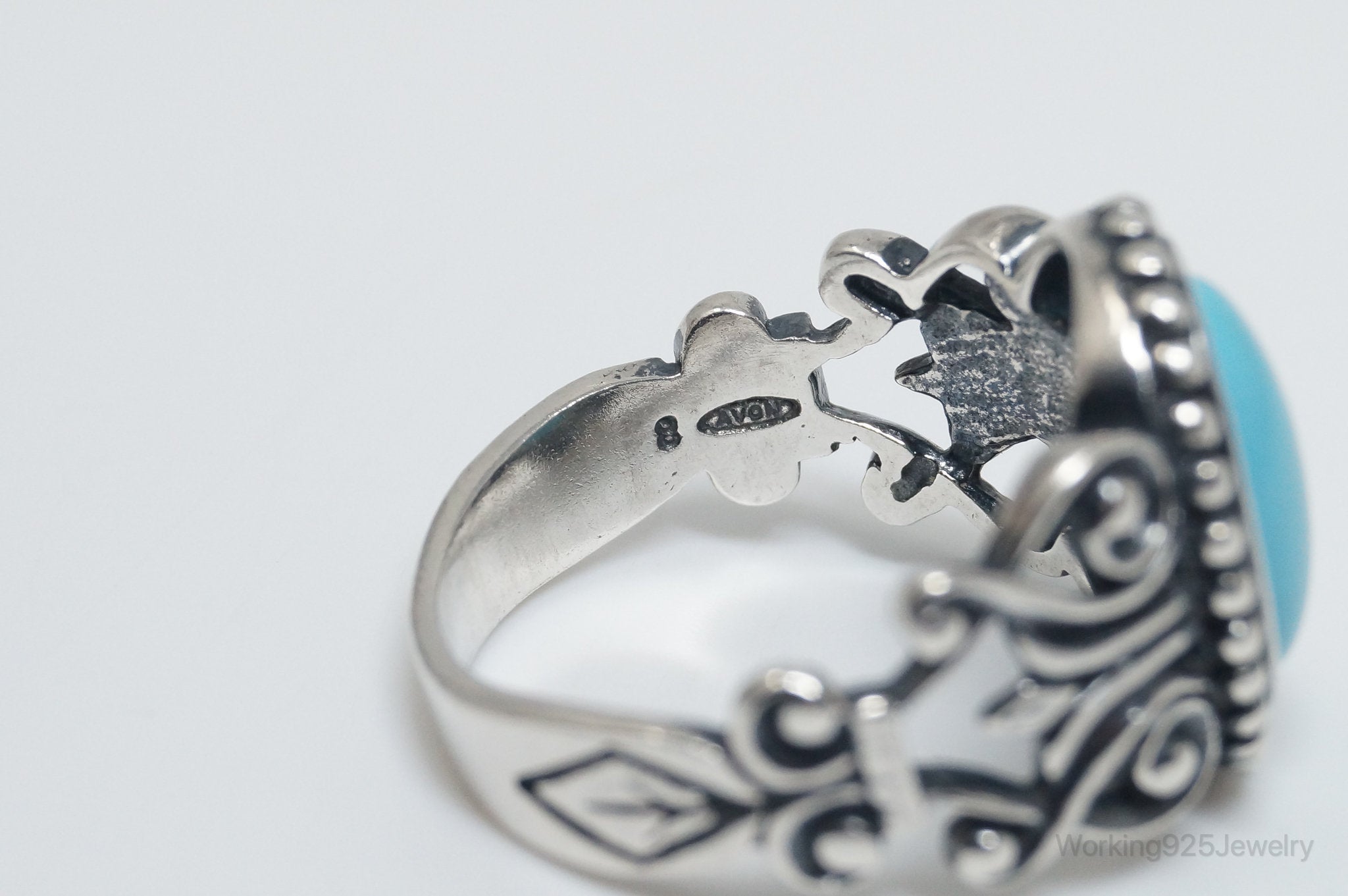 Vintage Designer Avon Turquoise Scroll Sterling Silver Ring - Size 8