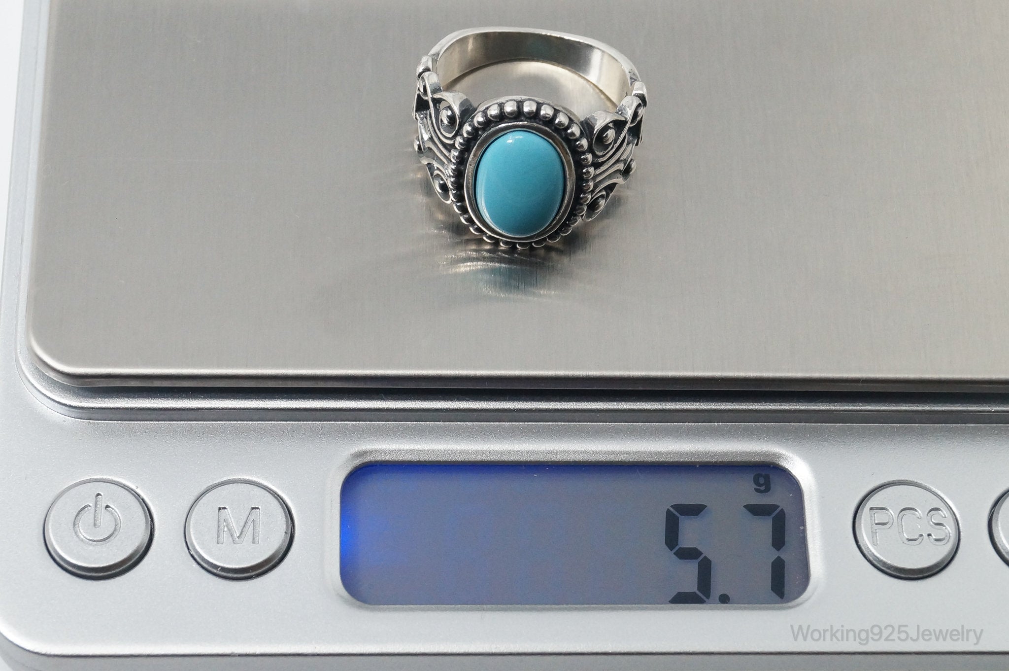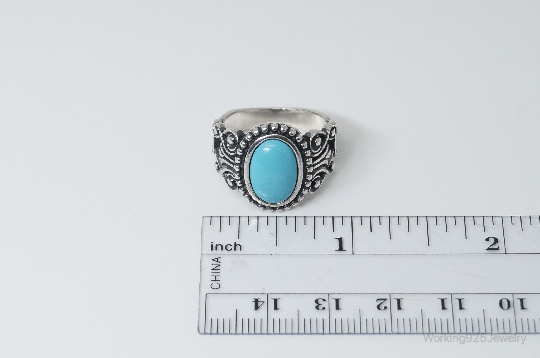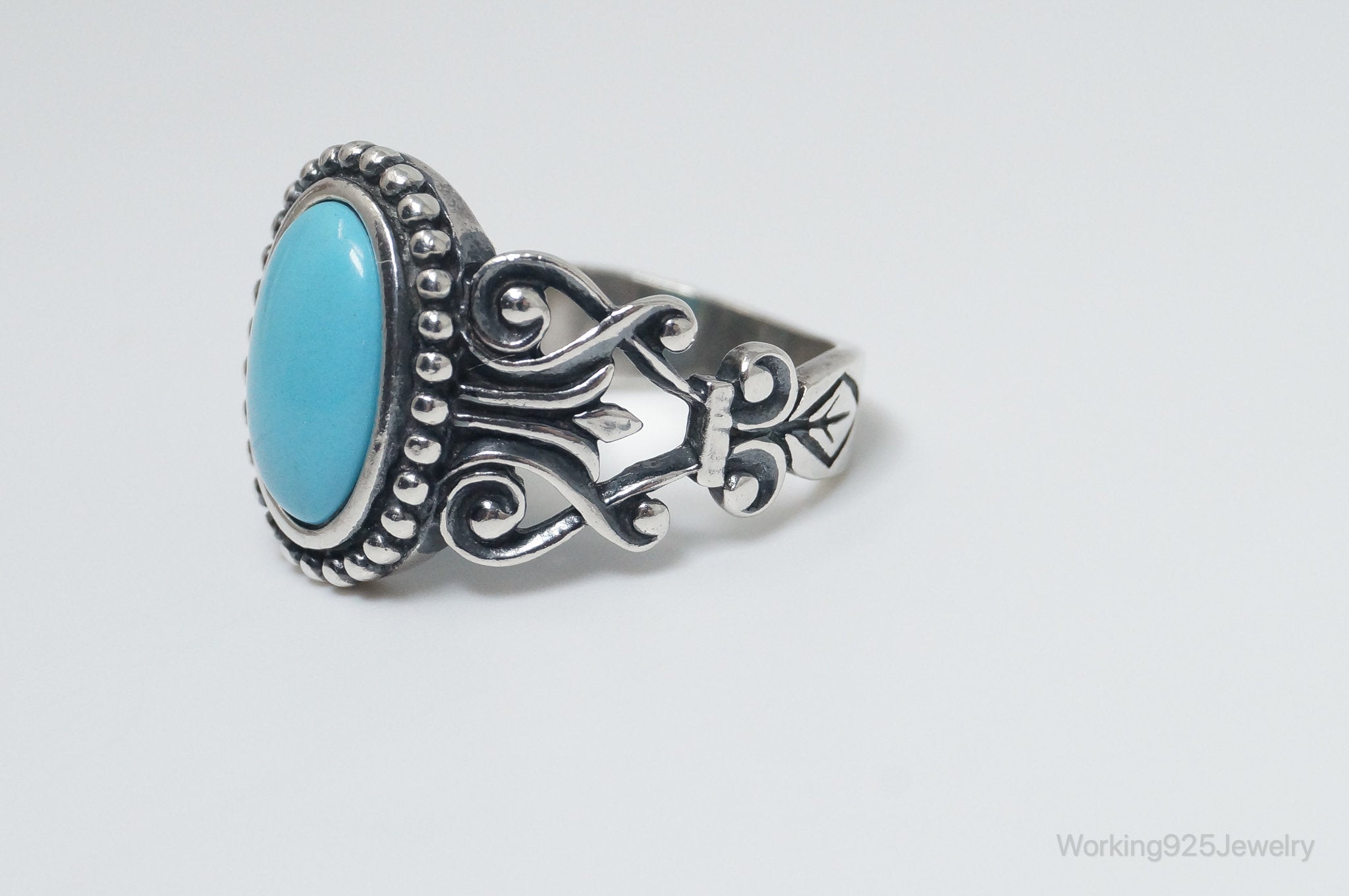 Vintage Designer Avon Turquoise Scroll Sterling Silver Ring - Size 8