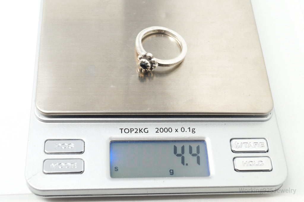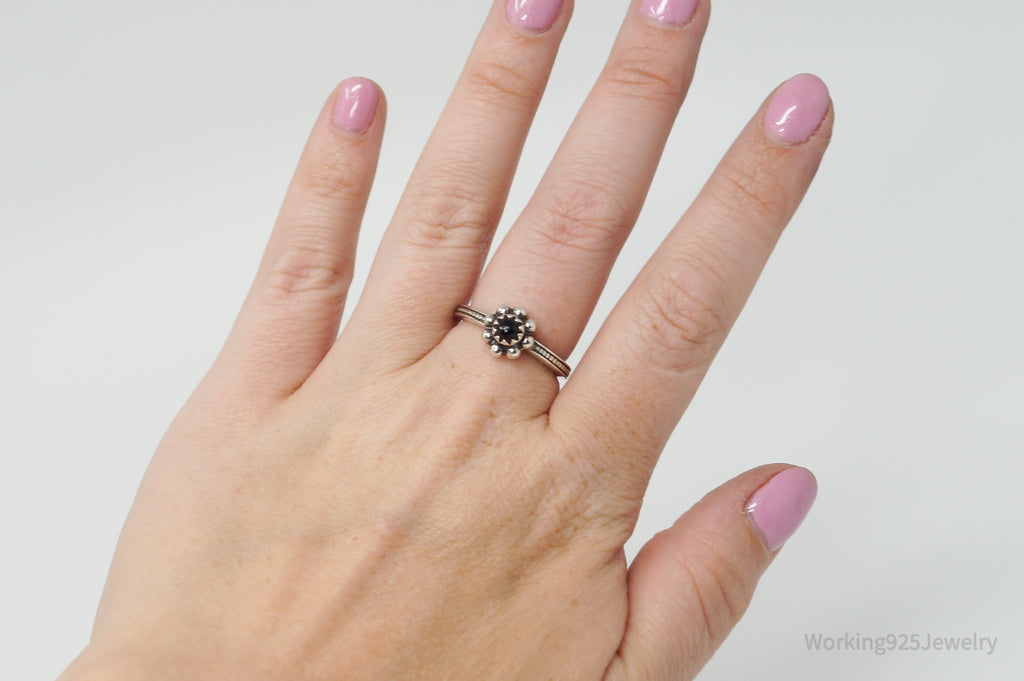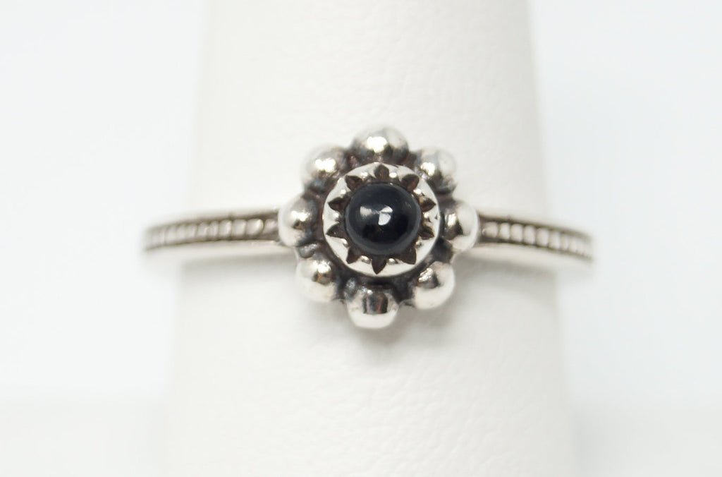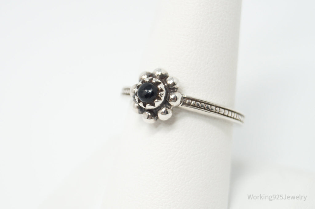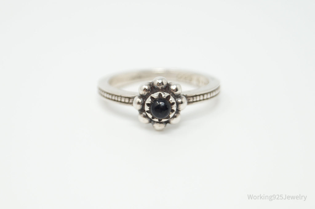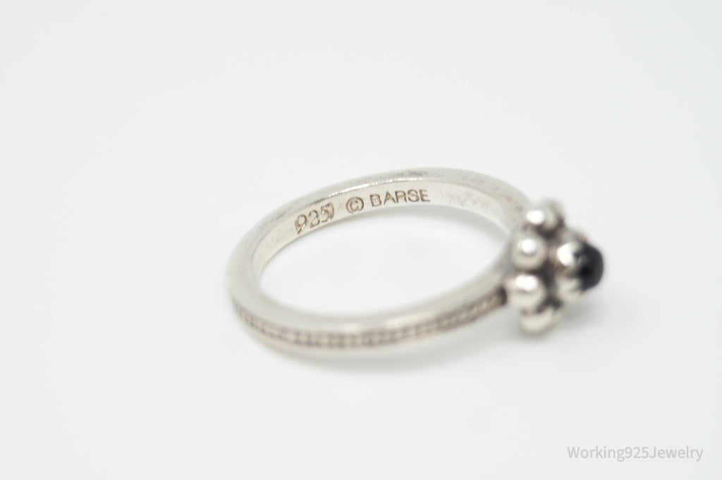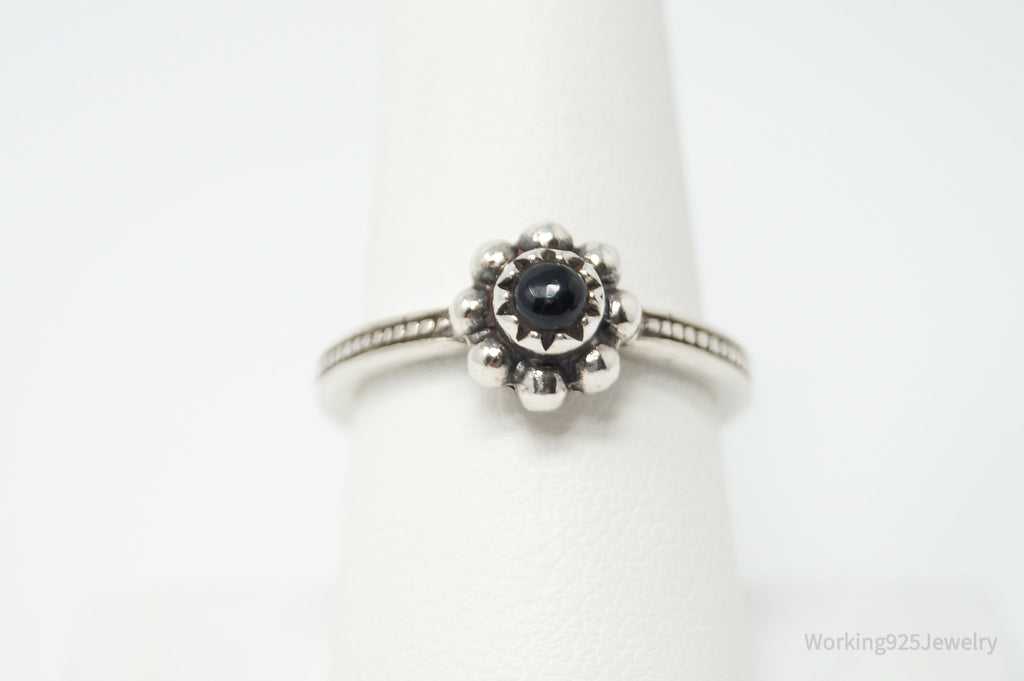 Vintage Designer BARSE Black Onyx Flower Sterling Silver Ring - Size 8.25
