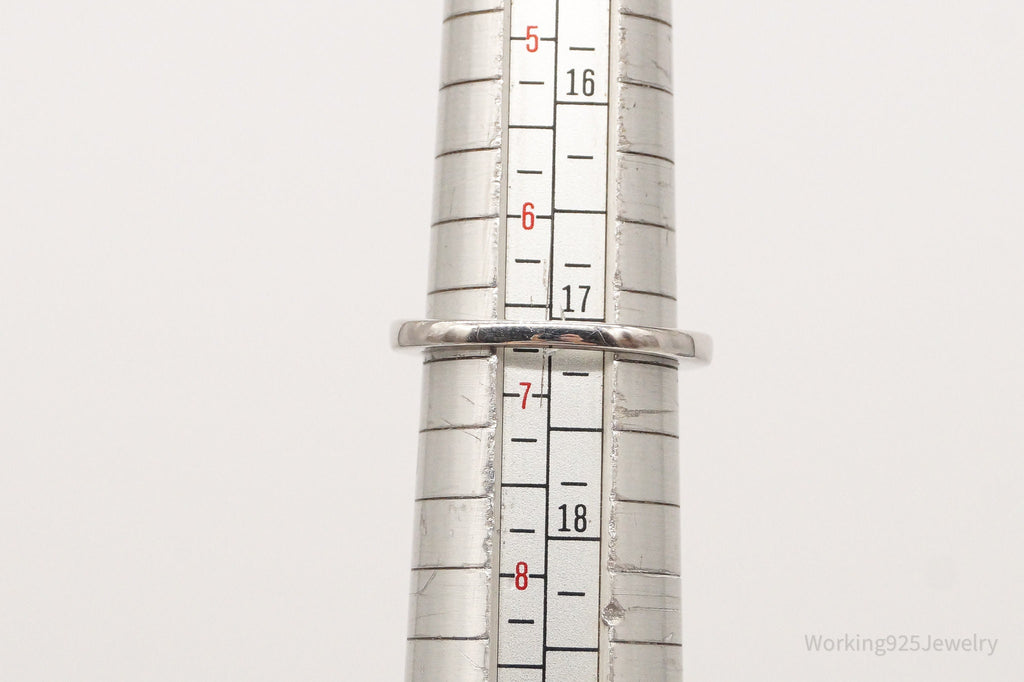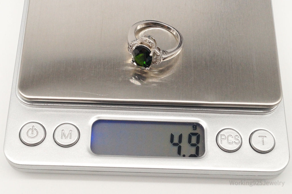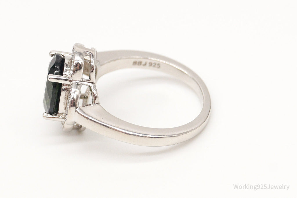 Vintage Designer BBJ Green Stone 4 Diamond Sterling Silver Ring - Size 6.75