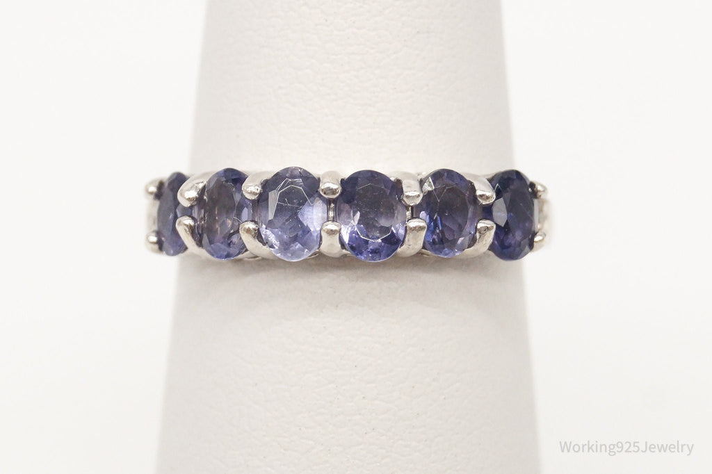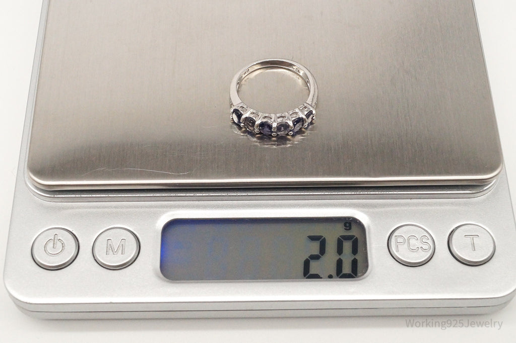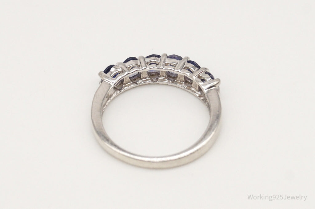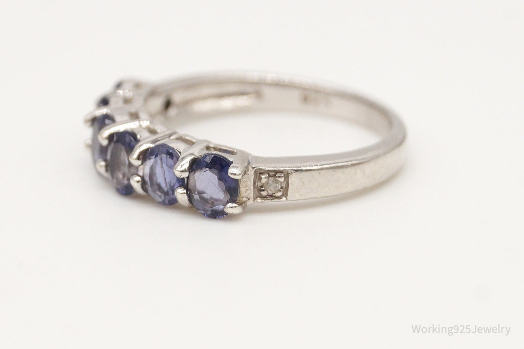 Vintage Designer BBJ Iolite Two Diamond Sterling Silver Ring - Size 5