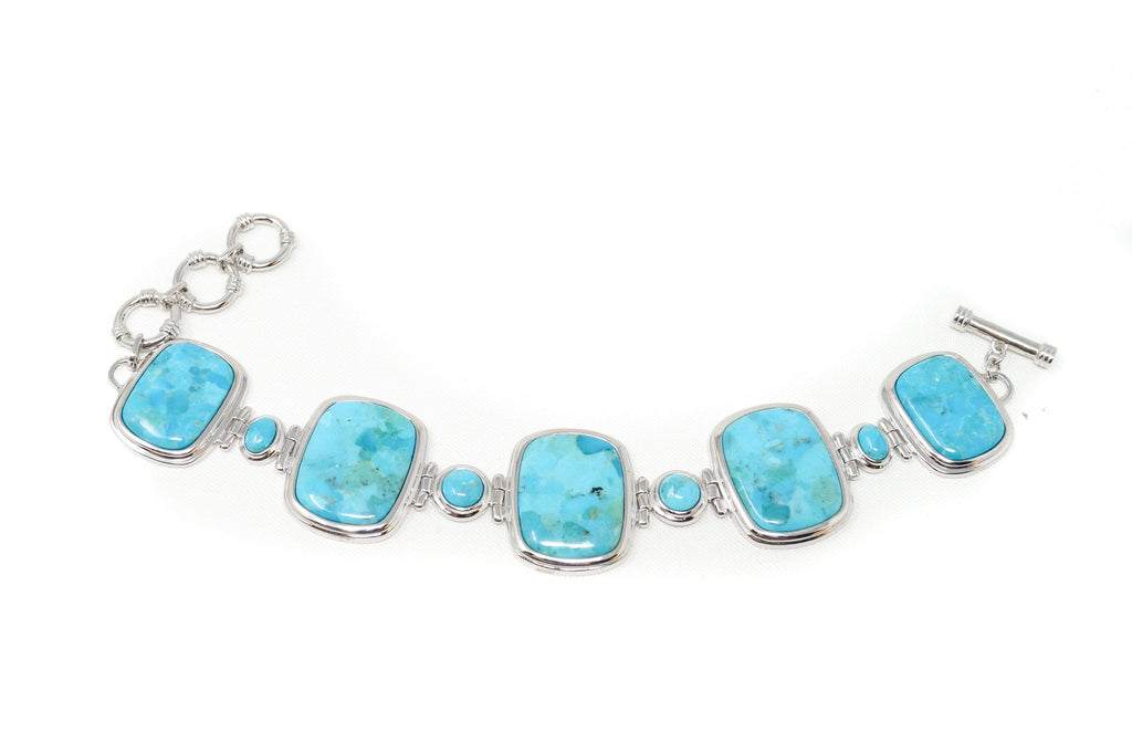 Vintage Designer BBJ Turquoise Southwestern Sterling Silver Toggle Bracelet