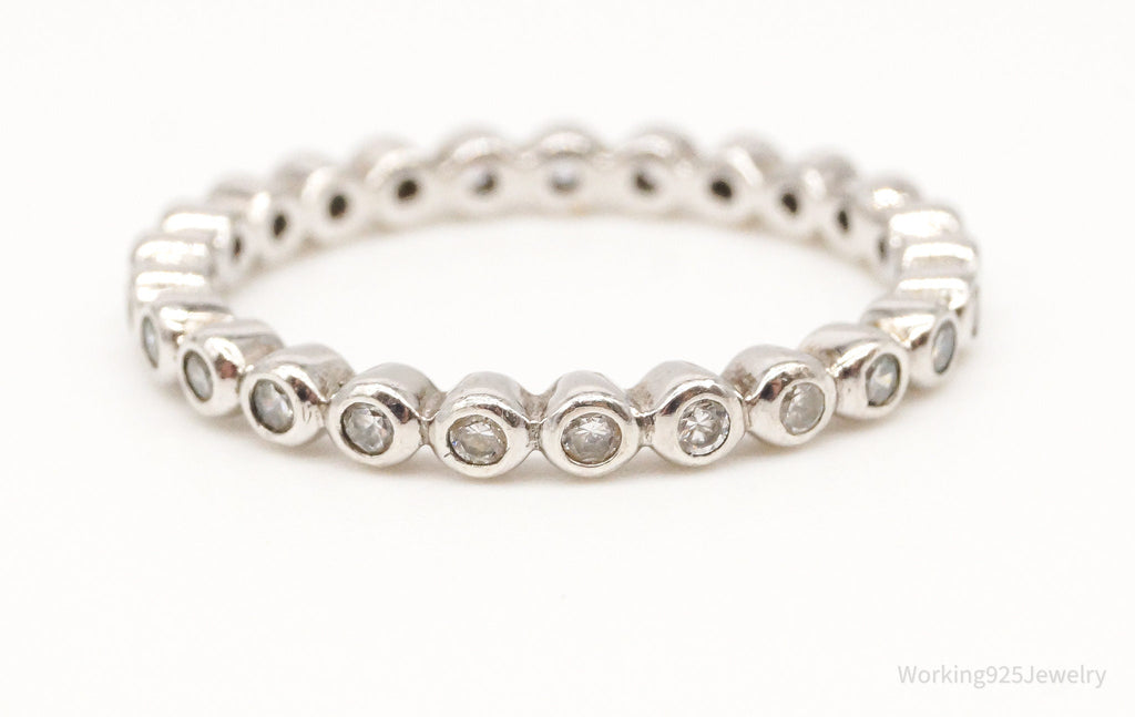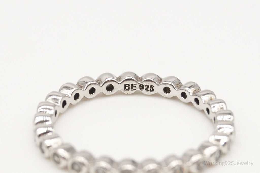 Vintage Designer BE Cubic Zirconia Sterling Silver Band Ring - Size 8