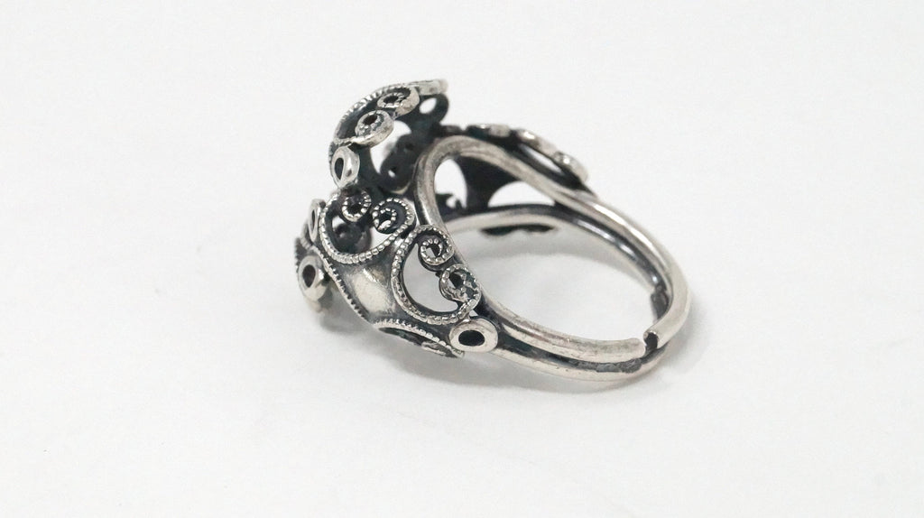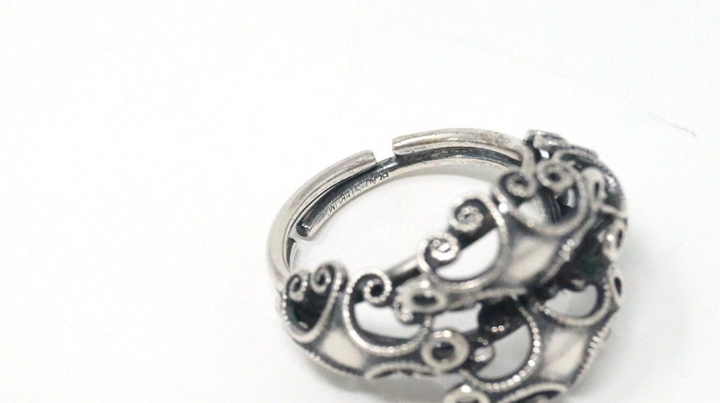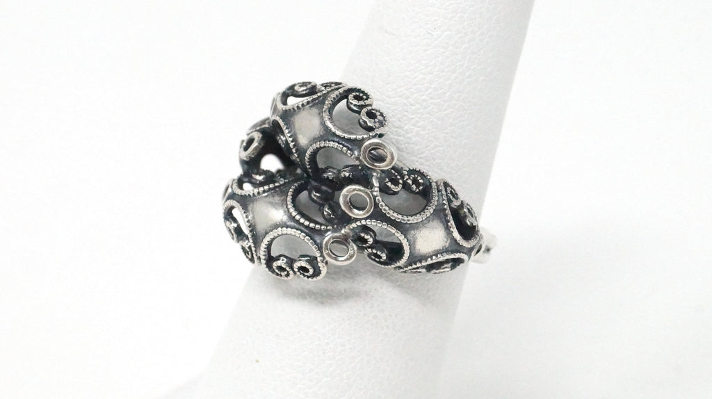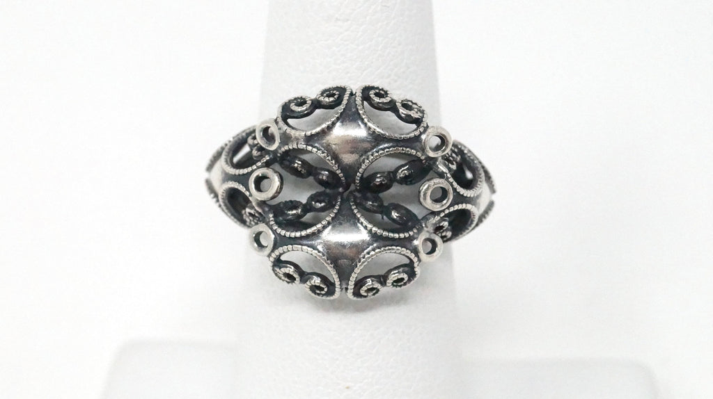 Vintage Designer Beau Motif Modernist Swirl Heart Sterling Silver Ring Sz 6