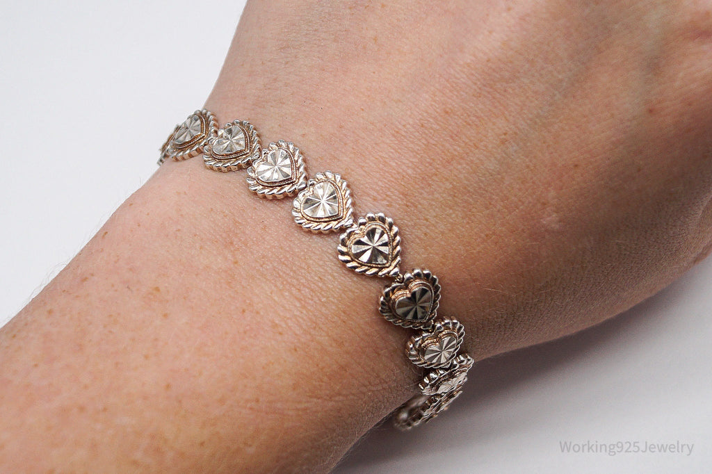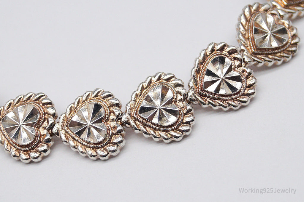 Vintage Designer Beverly Hills Silver Hearts Sterling Silver Bracelet 7 5/8"