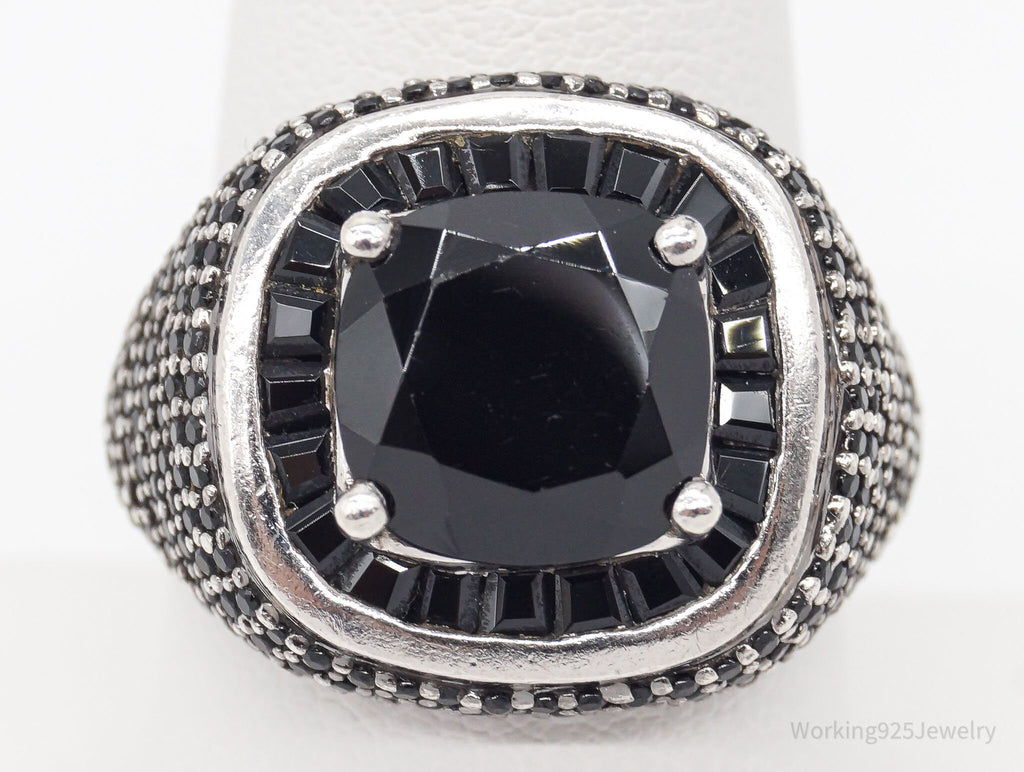 Vintage Designer Black Spinel Sterling Silver Ring - Size 8.75