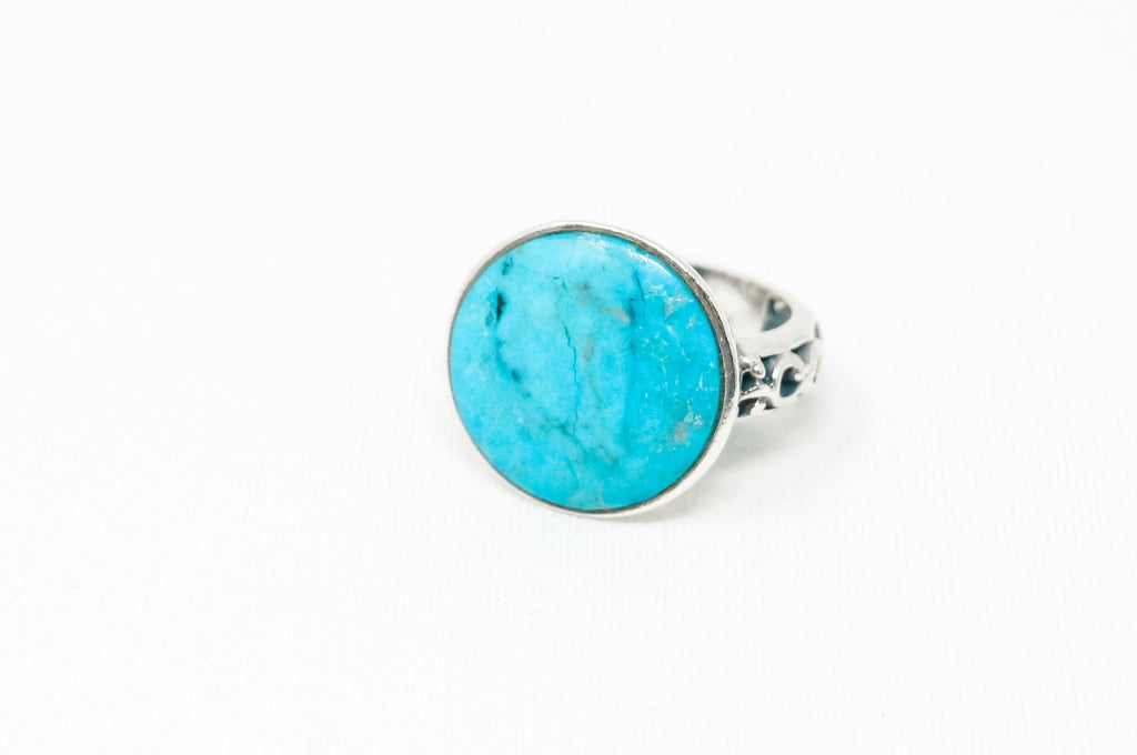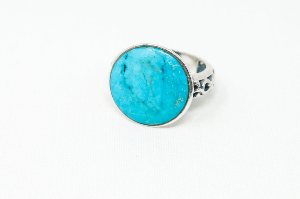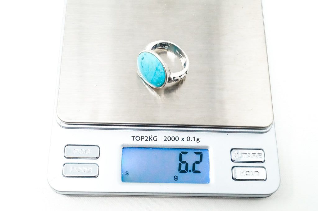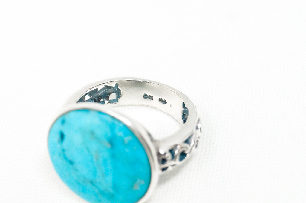 Vintage Designer BOMA Turquoise Scroll Sterling Silver Ring - Sz 7 - 784627692