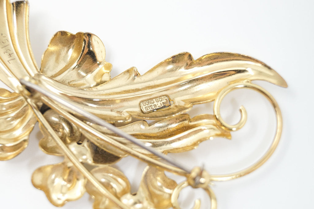 Vintage Designer BOYD BOND Gold Vermeil Rhinestone Sterling Silver Brooch Pin
