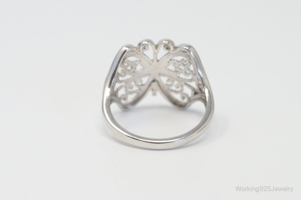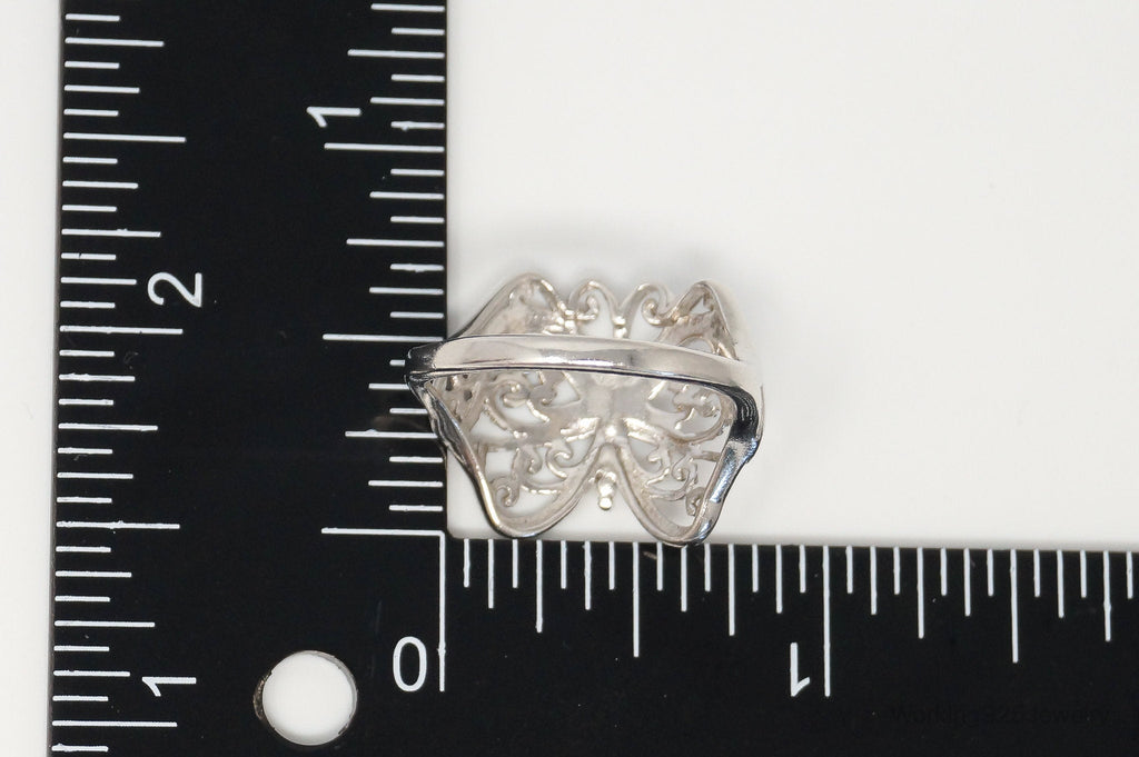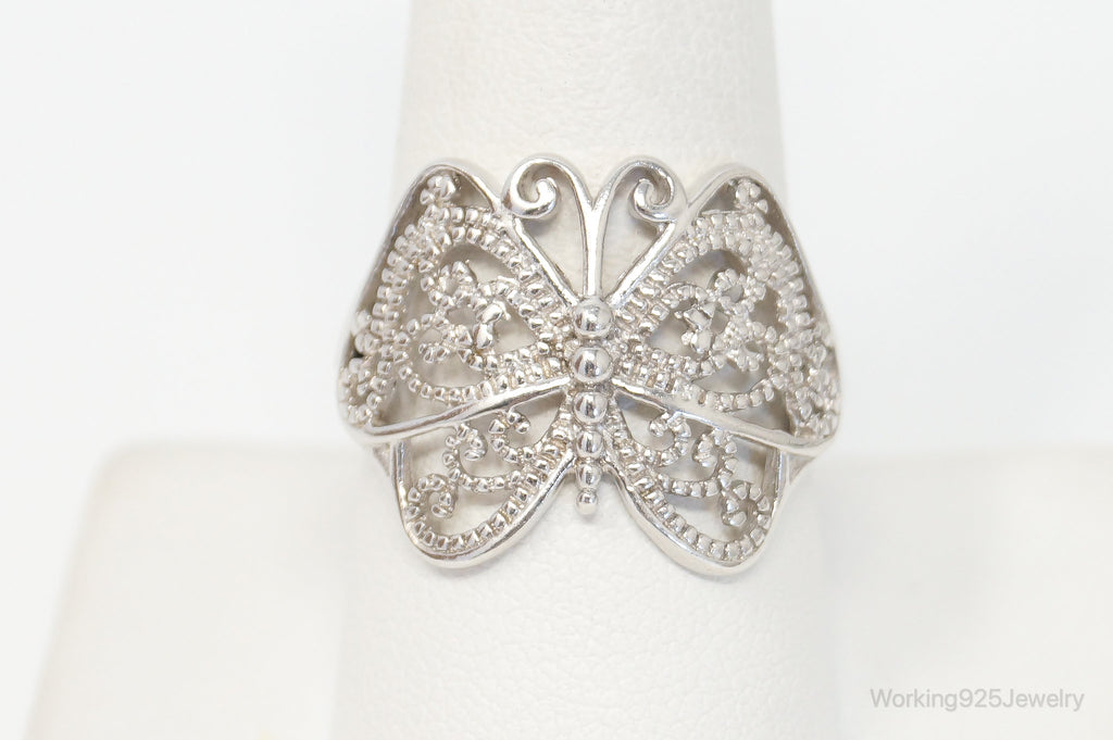 Vintage Designer Butterfly Scroll Miligrain Sterling Silver Ring - Size 9.25
