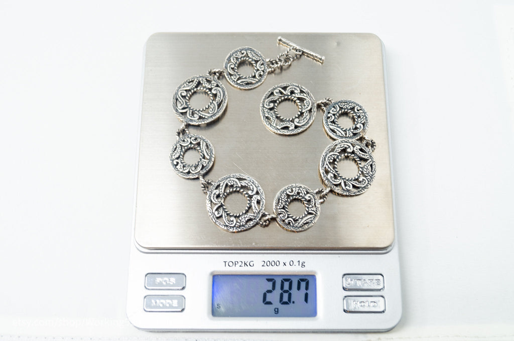 Vintage Designer Carolyn Pollack Relios Southwestern Sterling Silver Bracelet