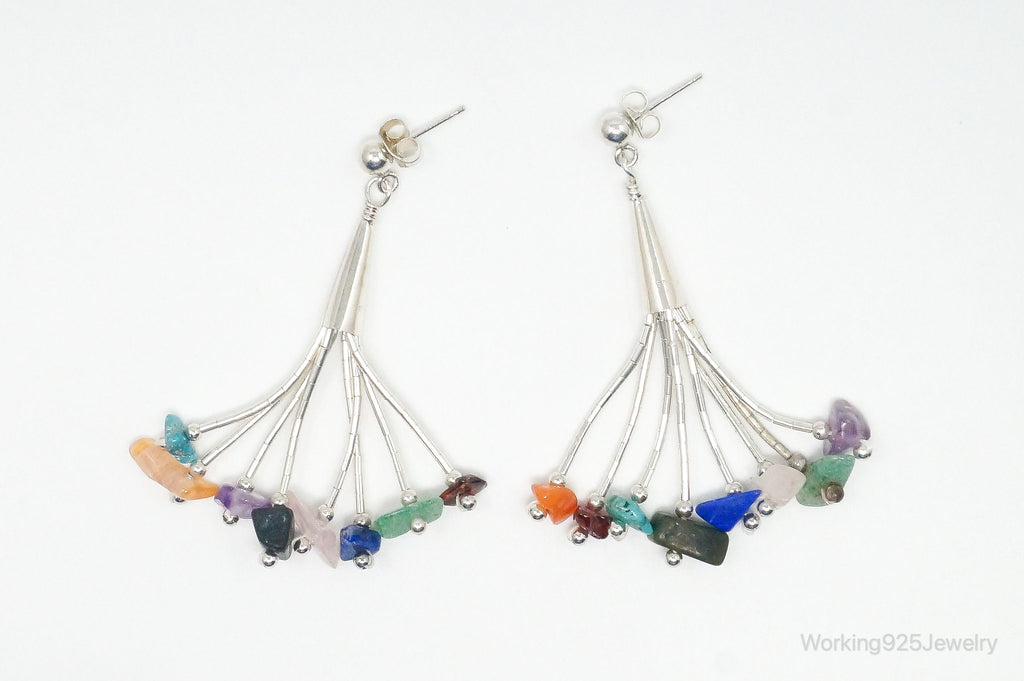Vintage Designer CJC Multi Gem Sterling Silver Earrings