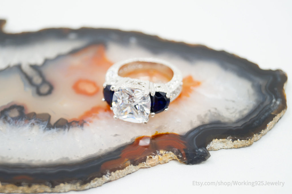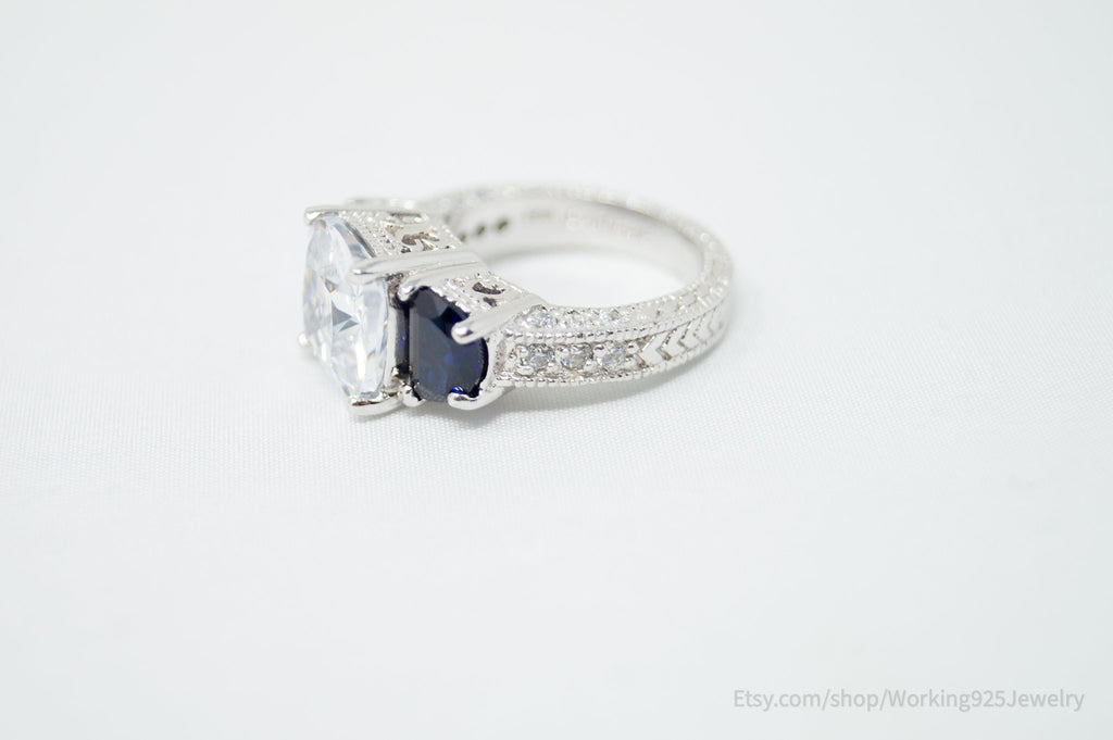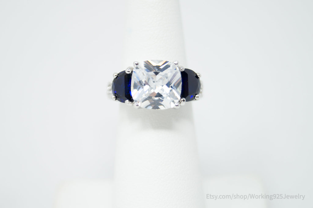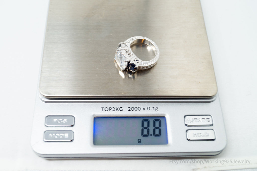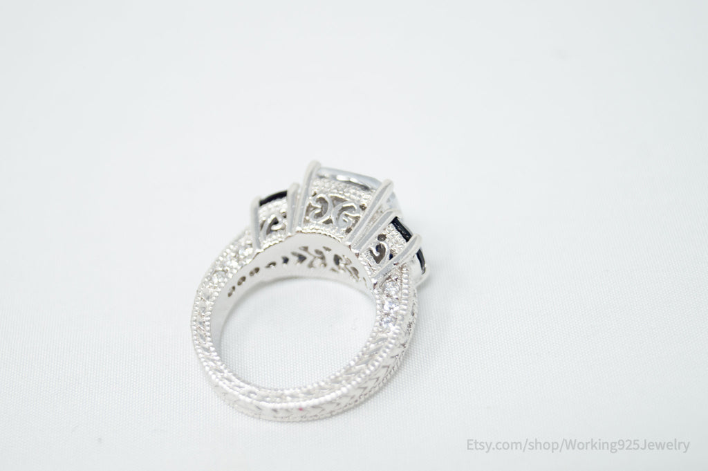 Vintage Designer CJW Art Deco CZ Sapphire Accented Sterling Ring - Size 5