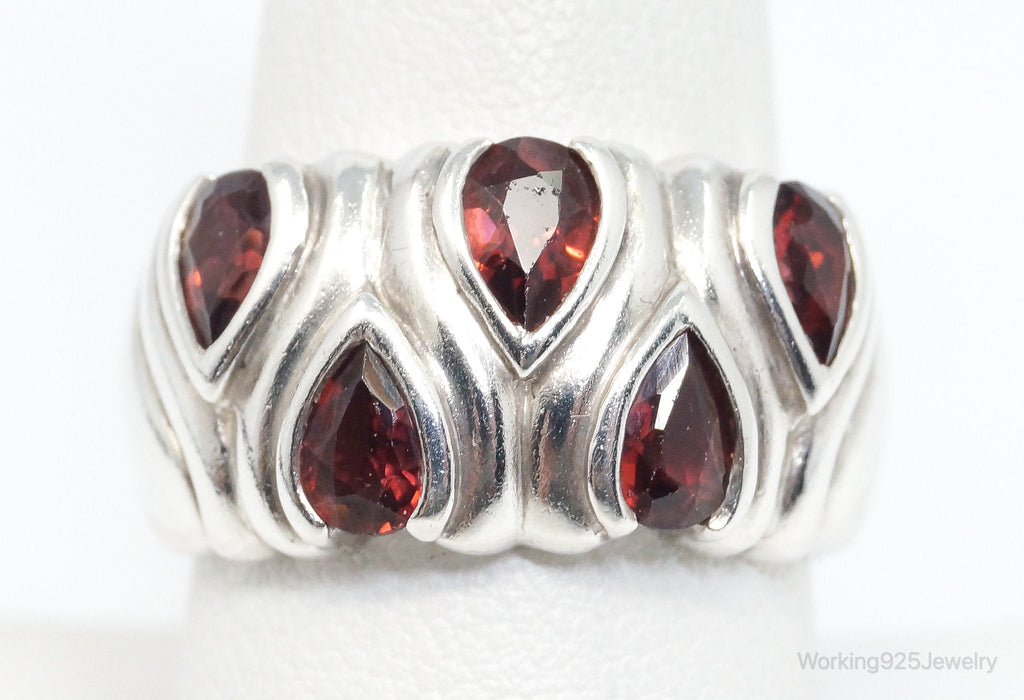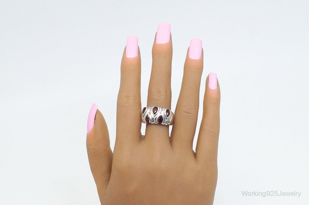 Vintage Designer CNA Garnet Sterling Silver Ring - SZ 9.25