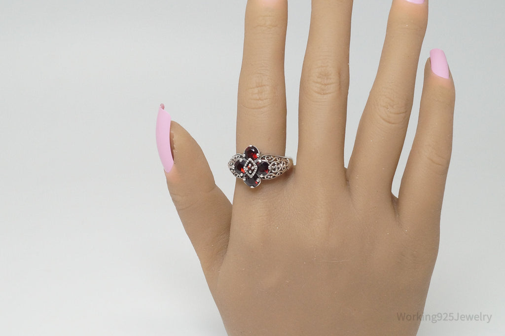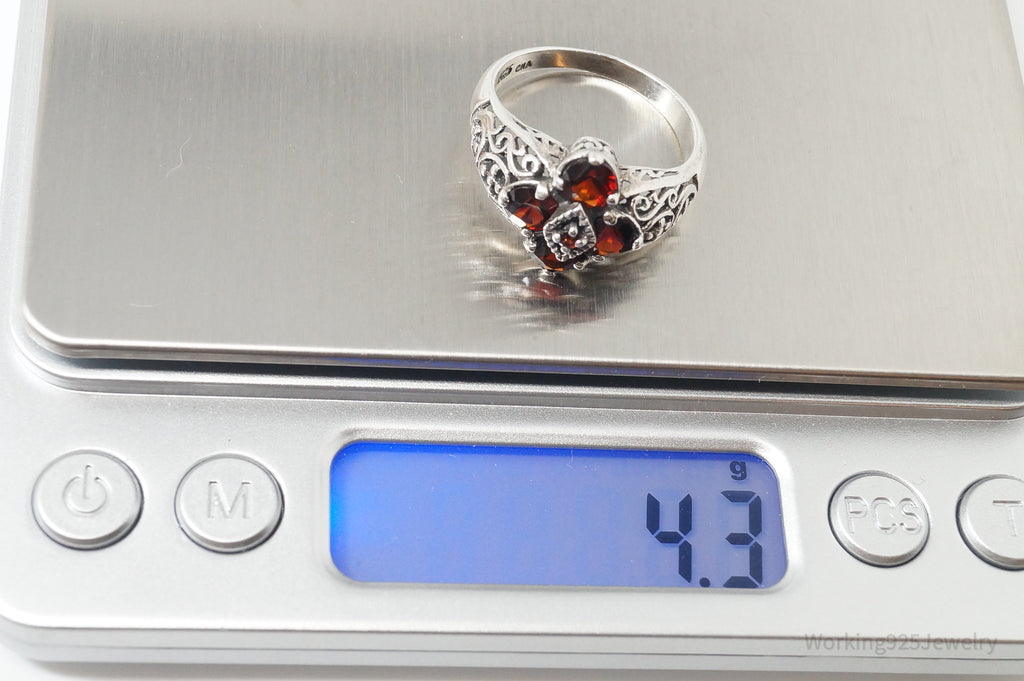 Vintage Designer CNA Garnet Sterling Silver Ring - Sz 9.75