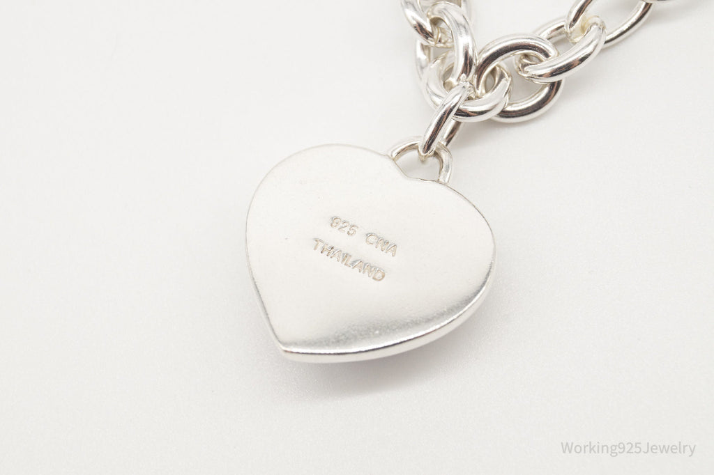 Vintage Designer CNA Lavender Jade Heart Chain Link Sterling Silver Bracelet