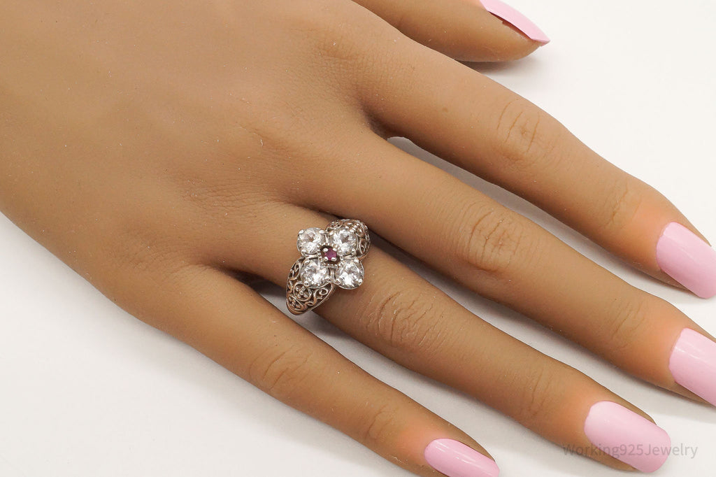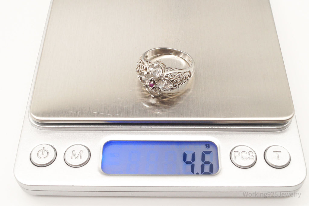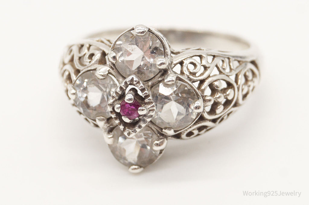 Vintage Designer CNA Ruby Cubic Zirconia Sterling Silver Ring - Size 7.75