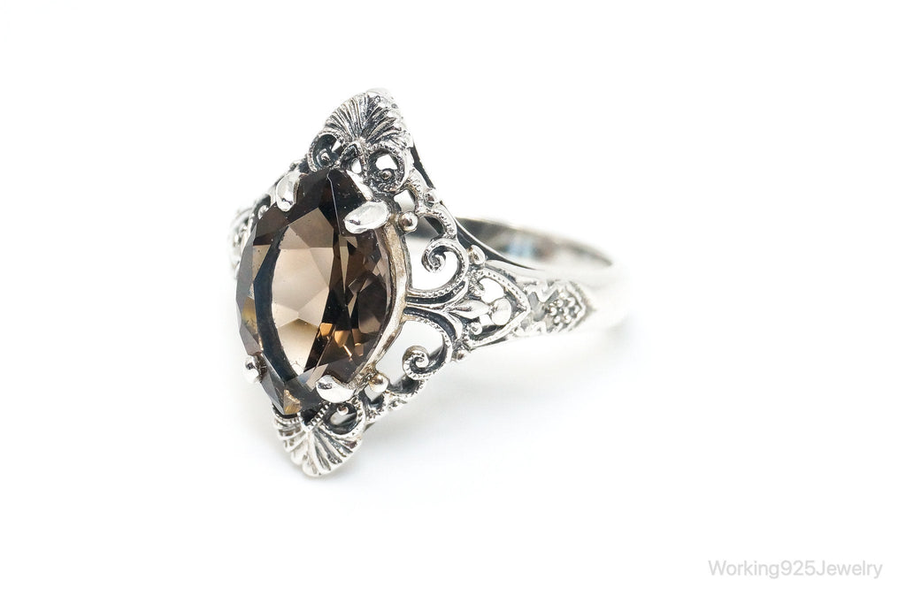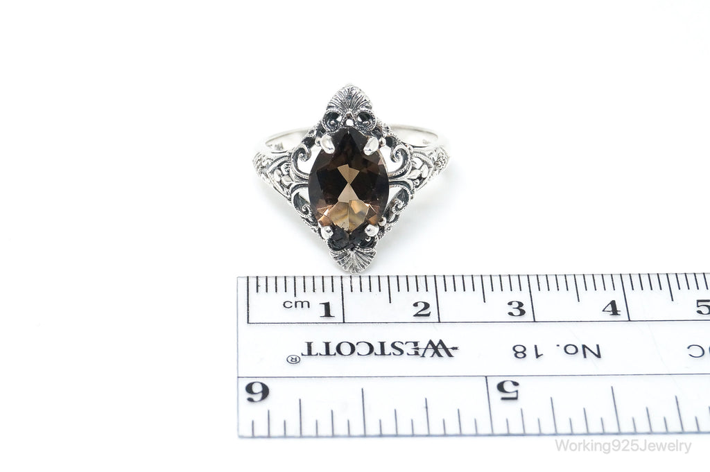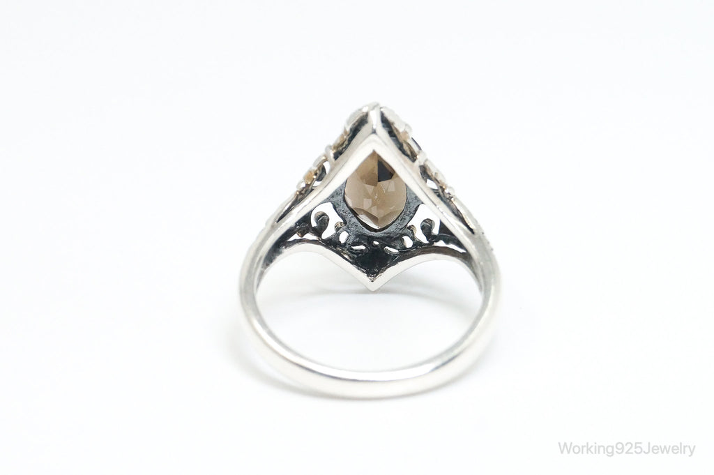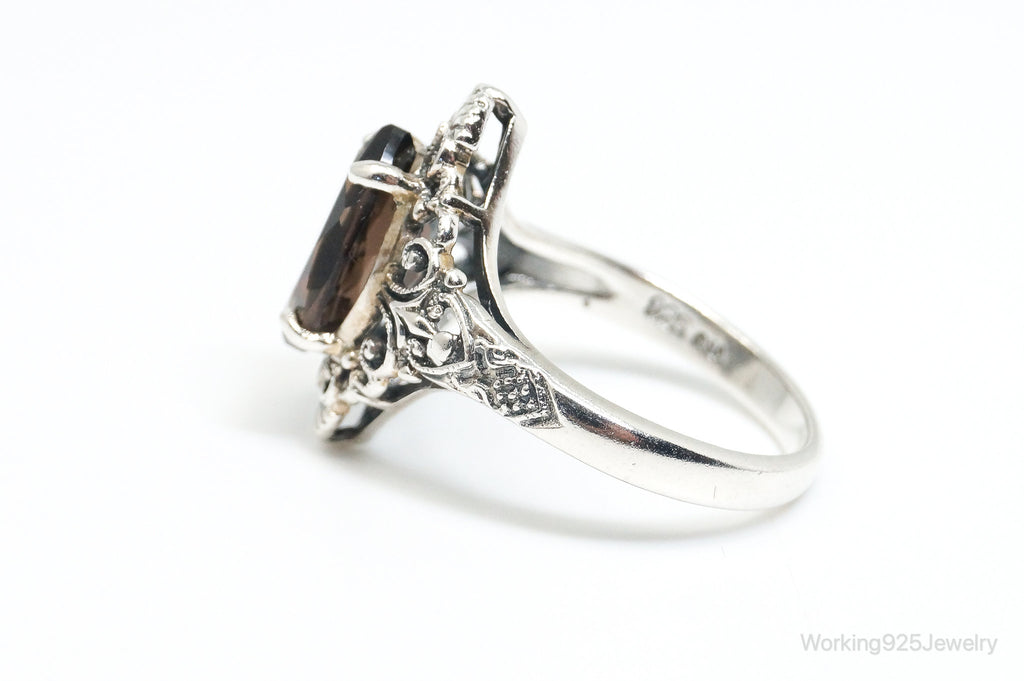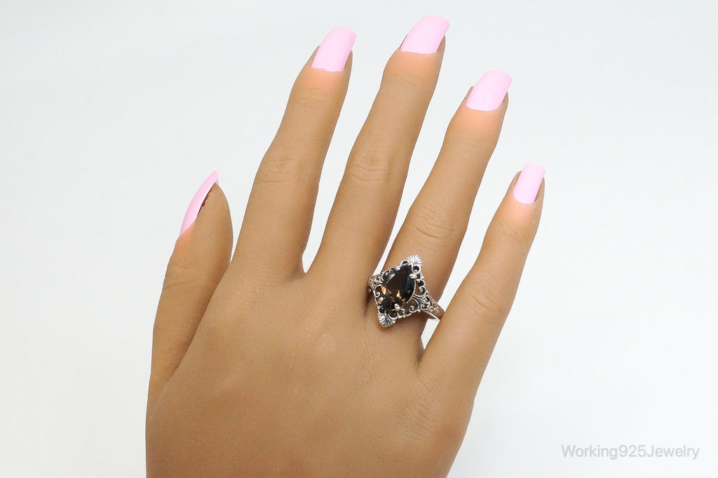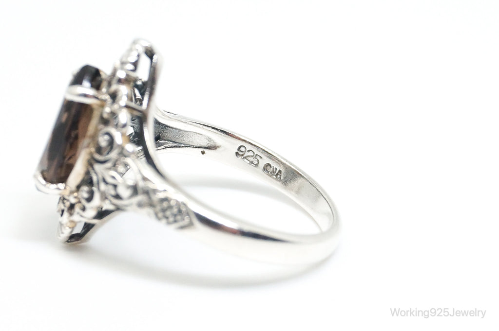 Vintage Designer CNA Smoky Topaz Scroll Sterling Silver Ring - SZ 9