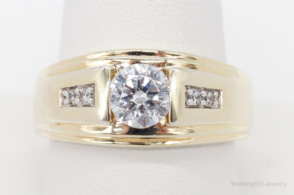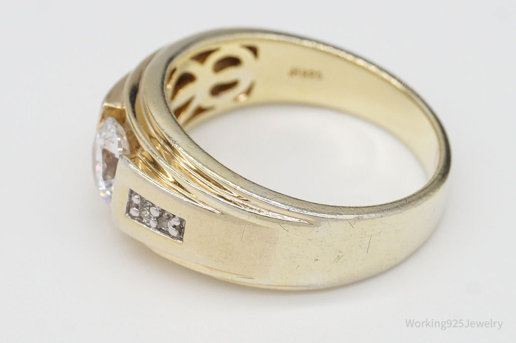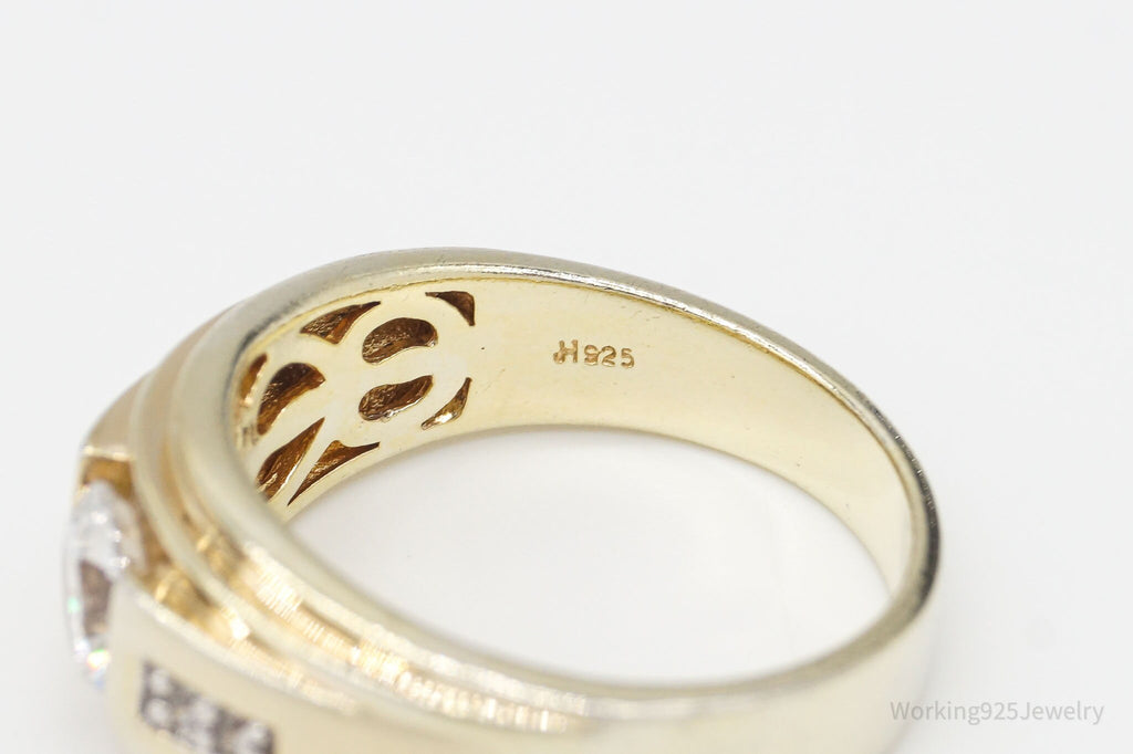 Vintage Designer Cubic Zirconia Gold Vermeil Sterling Silver Ring Size 10.75