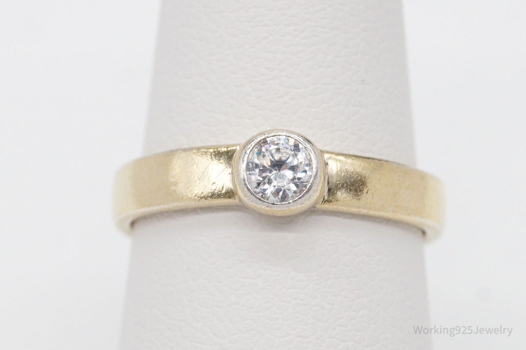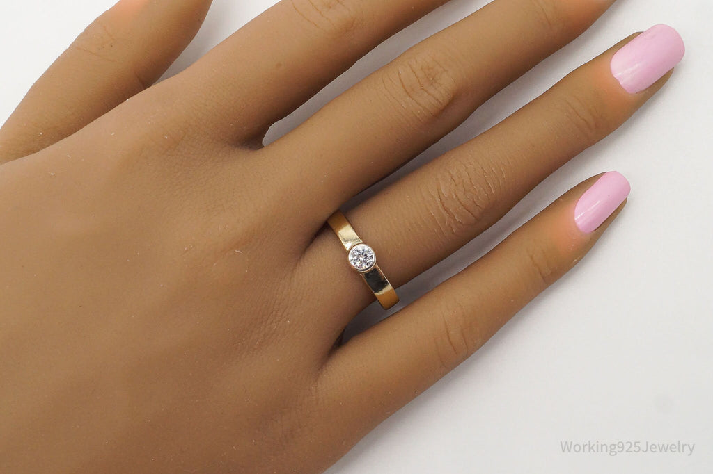 Vintage Designer Cubic Zirconia Gold Vermeil Sterling Silver Ring - Size 7.75