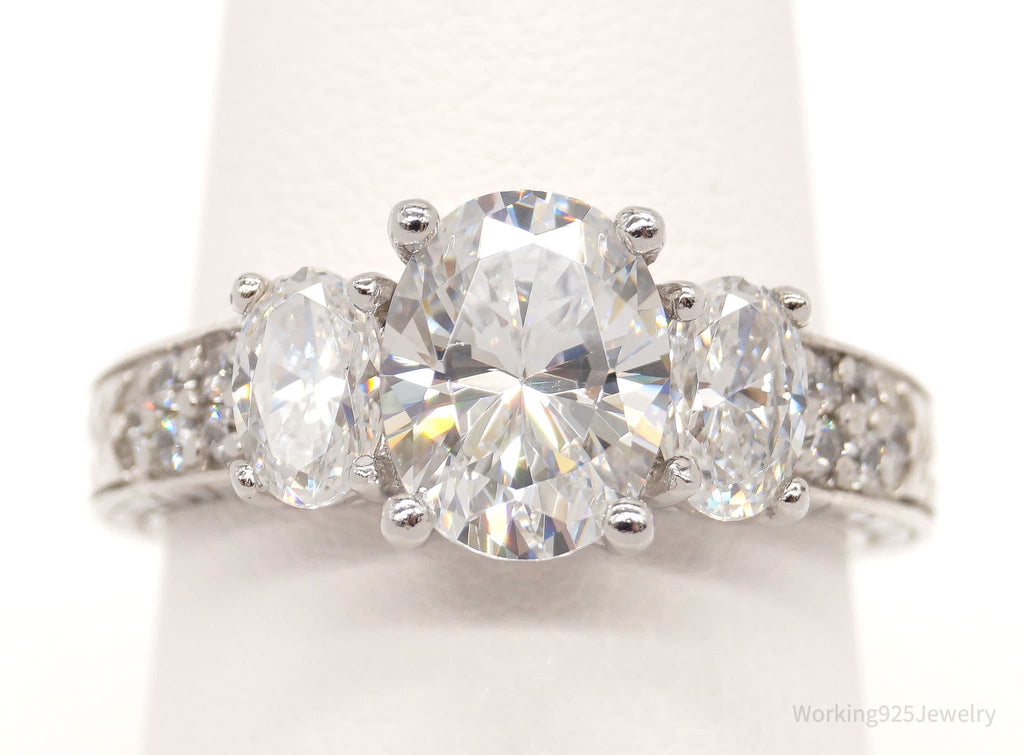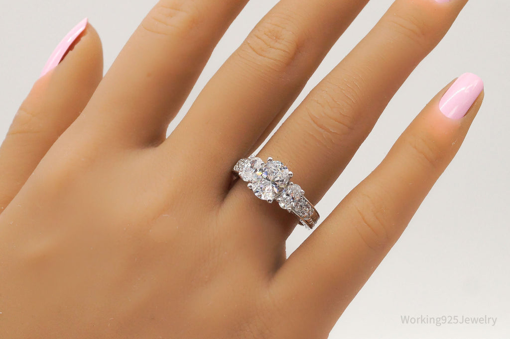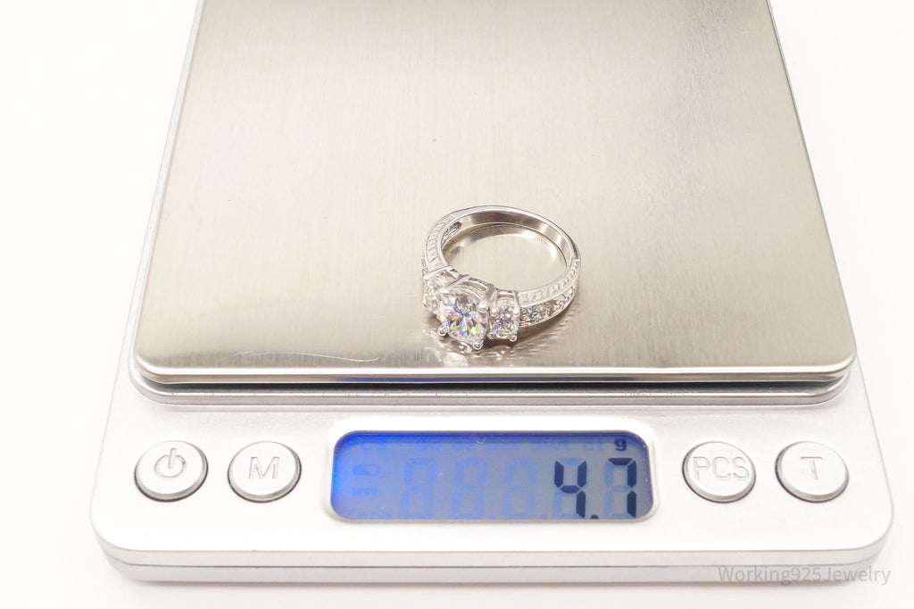 Vintage Designer Cubic Zirconia Sterling Silver Ring - Size 7.75