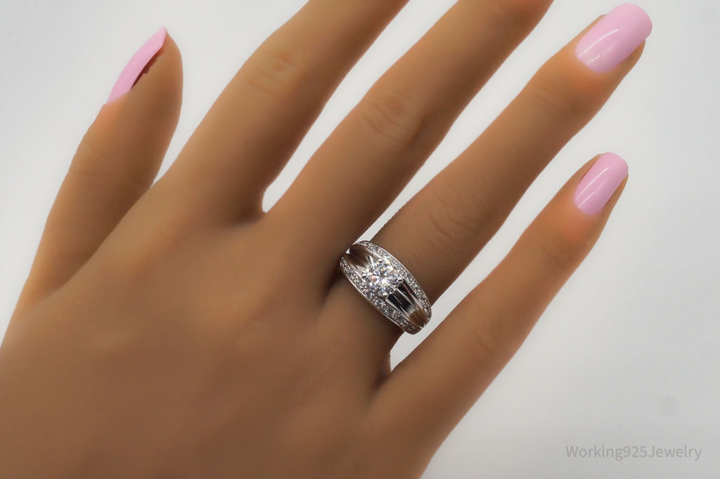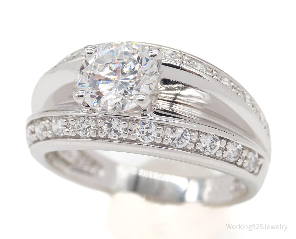 Vintage Designer Cubic Zirconia Sterling Silver Ring - Size 7